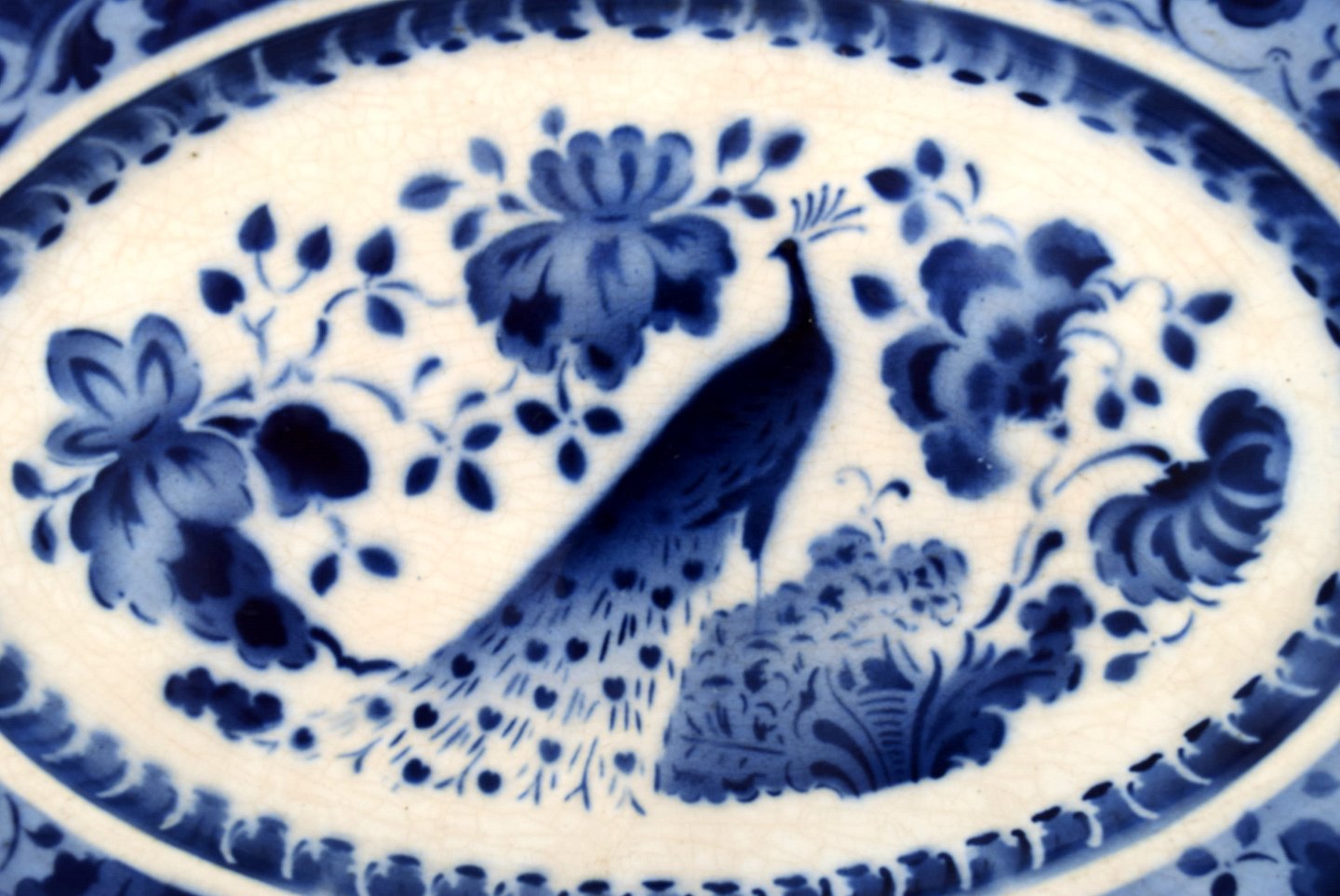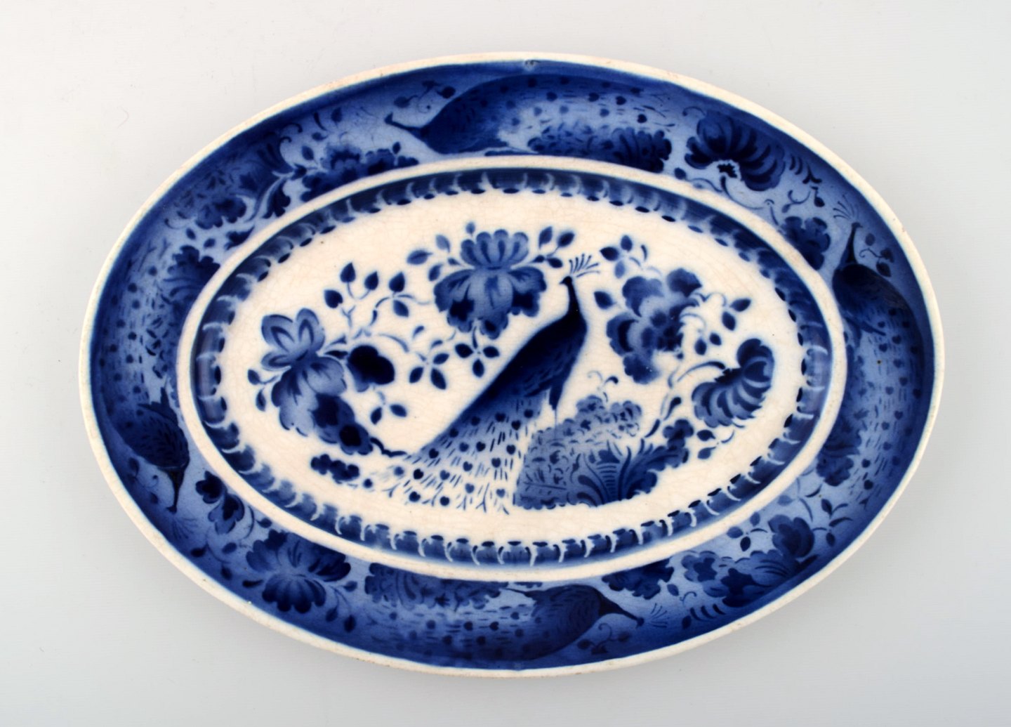 Peacock from Copenhagen faience / Aluminia. Large oval platter in earthenware. 2 pcs. in stock. We have many parts in stock. Measures: 28 cm. x 20 cm. In very good condition.