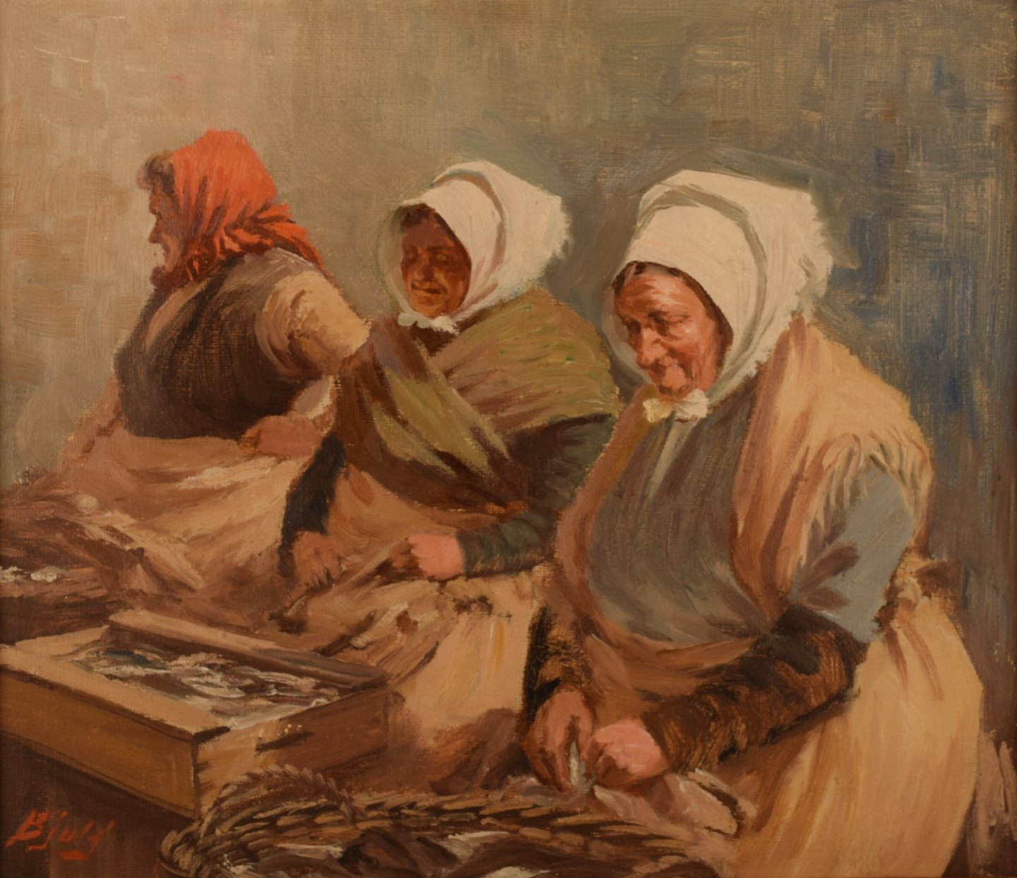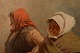 S. C. Bjulf: Fishermen's wives, The old dock, Copenhagen. Well listed danish artist. Signed Bjulf. 1930s. Oil on canvas. Measures . 40 cm. x 46 cm.