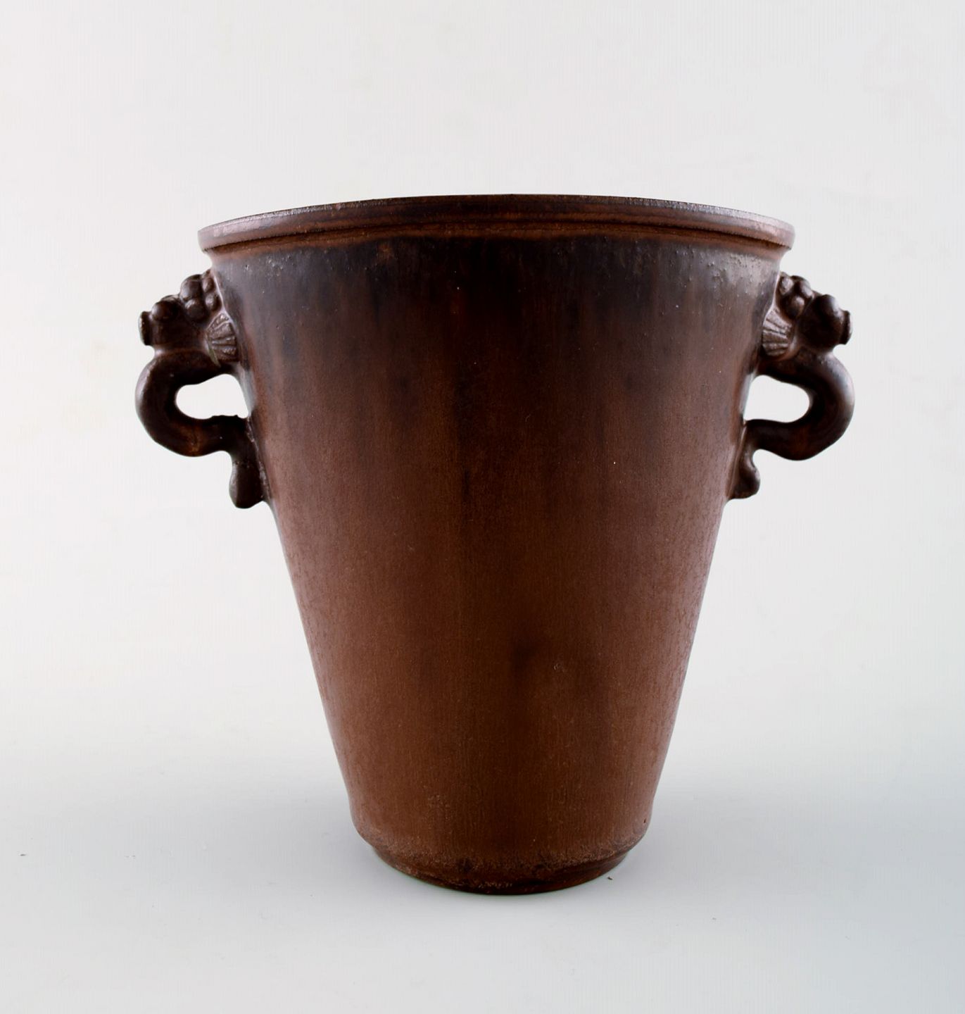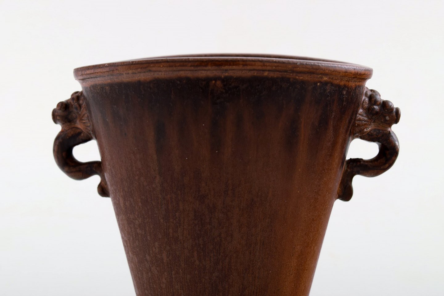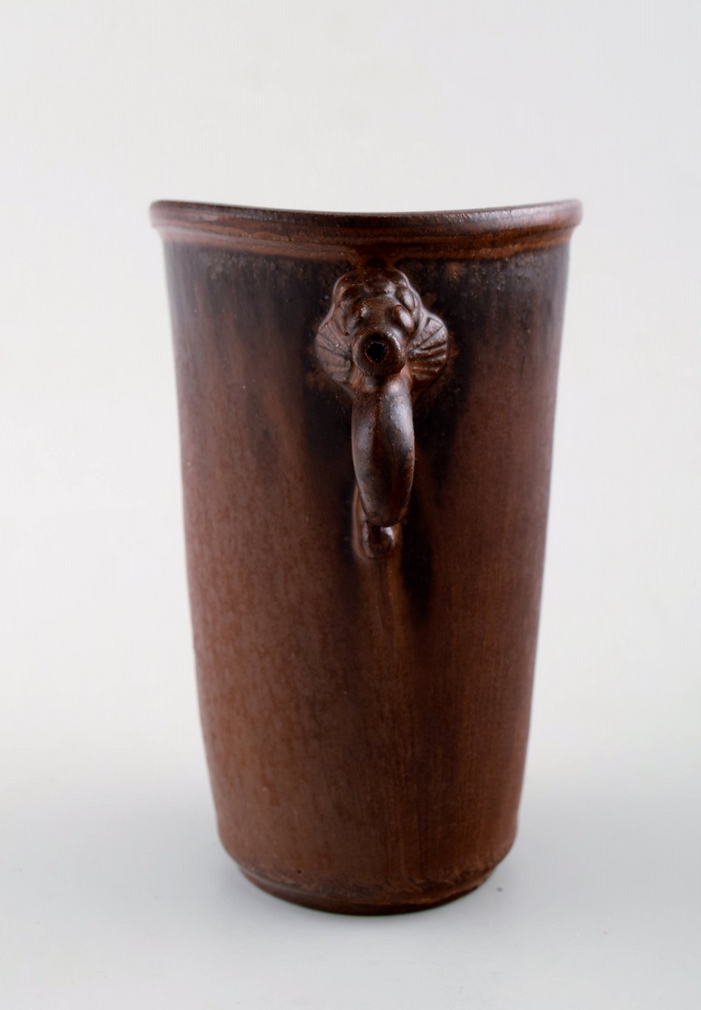 Arne Bang. Keramikvase. Flot glasur i brune nuancer. I perfekt stand. Måler: 12,5 cm. x 14,5 cm. Signeret.