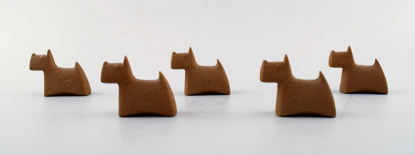 Stig Lindberg five scotties in ceramics. 5.5 cm. long and 4.5 cm. high. Unsigned. In perfect condition.