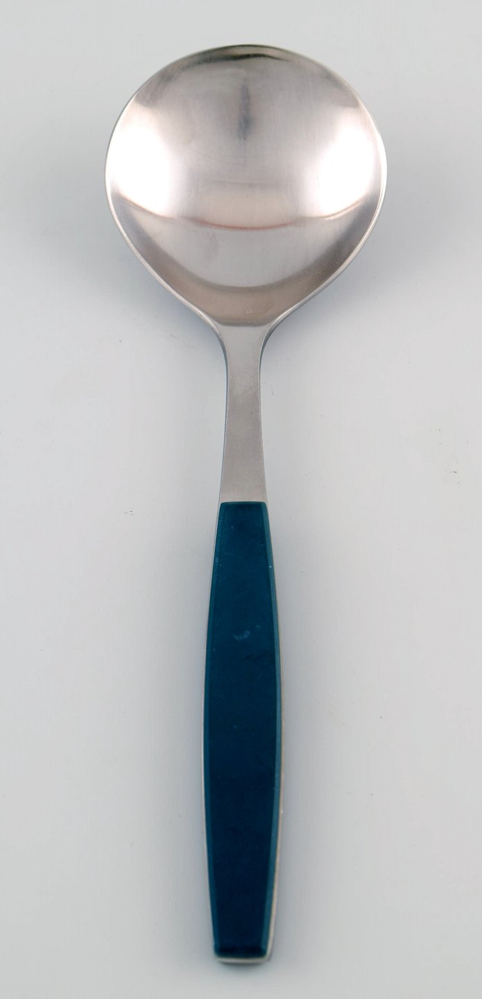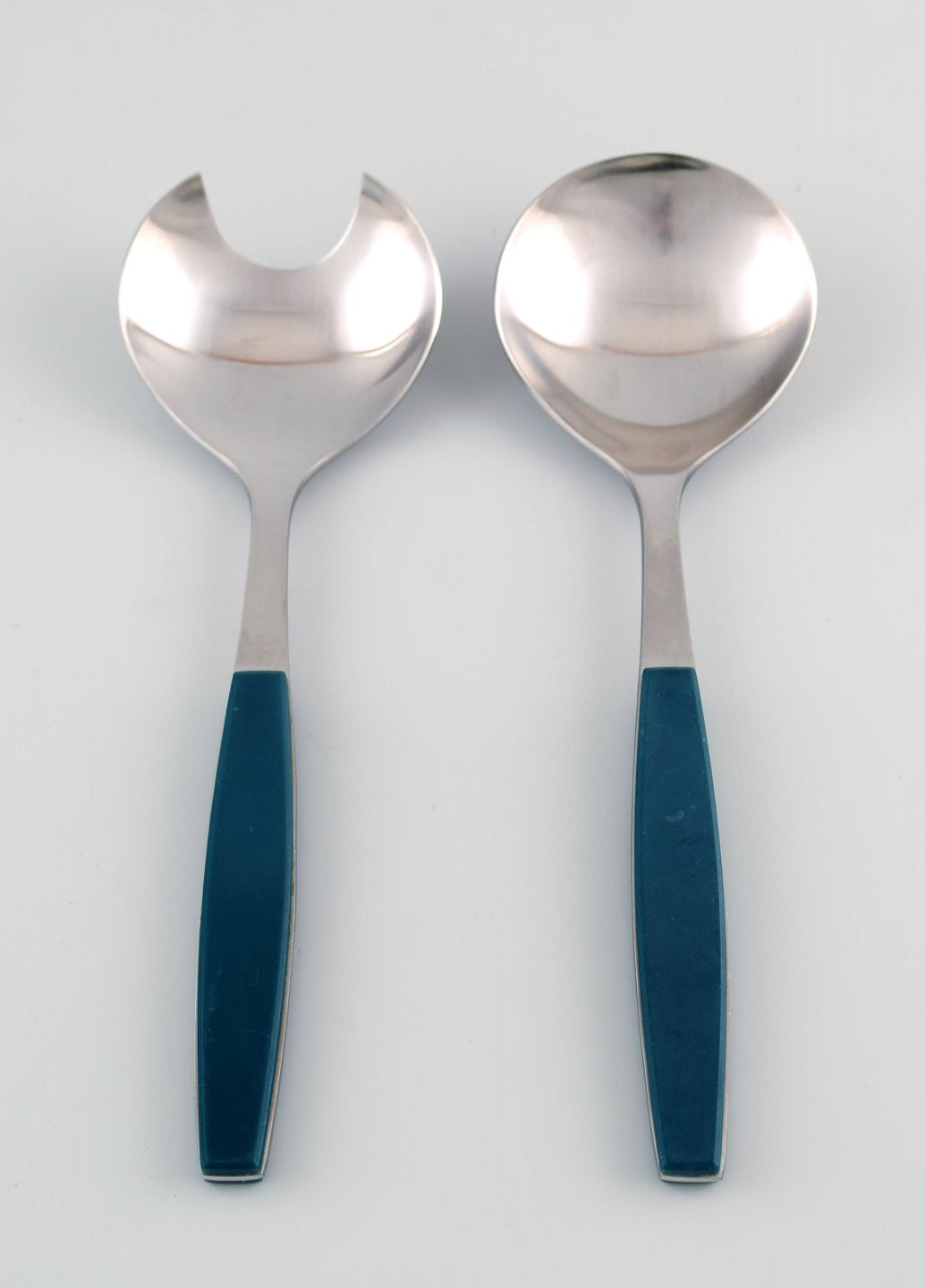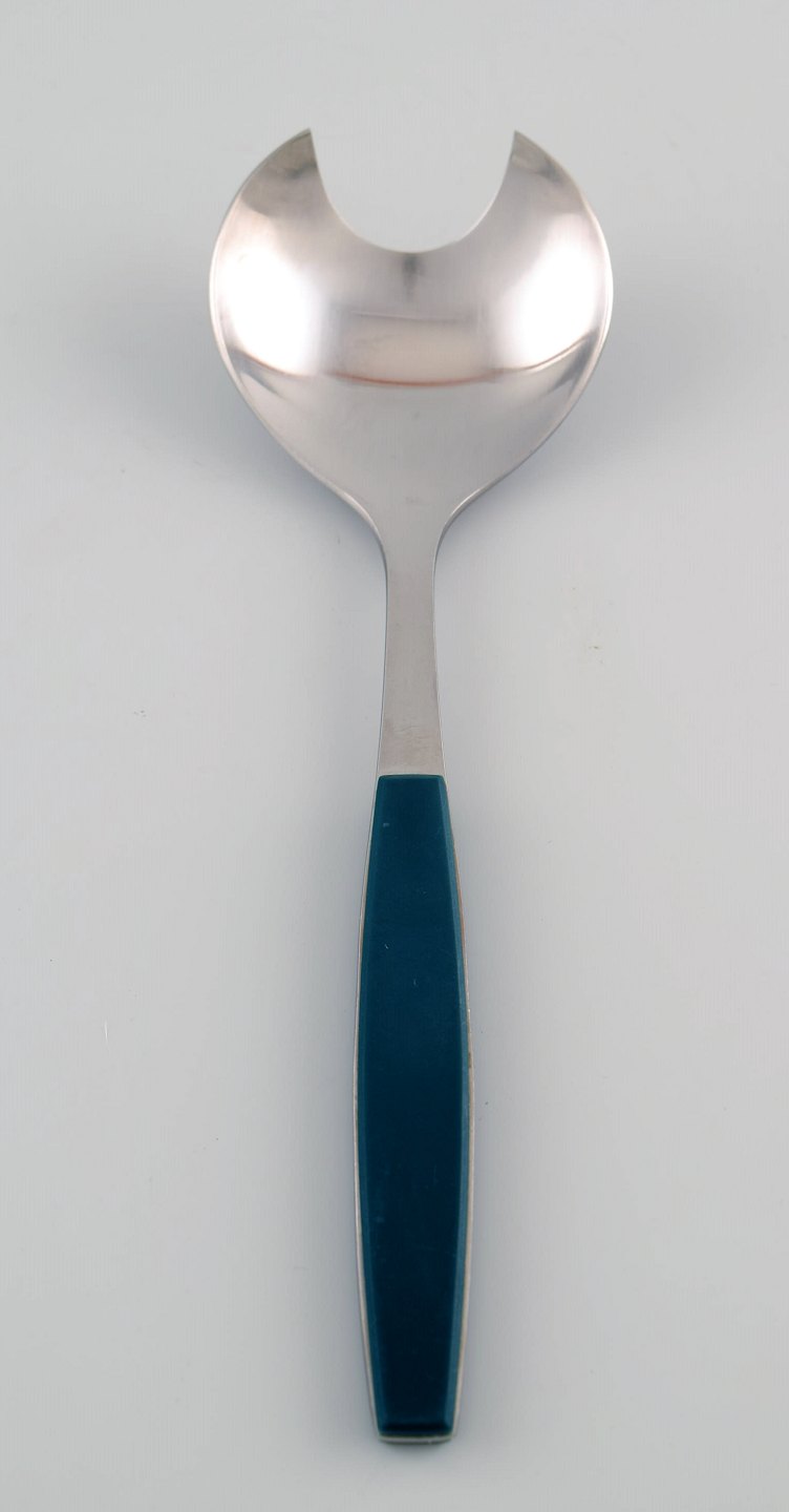 Henning Koppel. Strata salad set of stainless steel and green plastic. Produced by Georg Jensen. In very good condition. Danish design, 1970s. Measures: 22 cm.