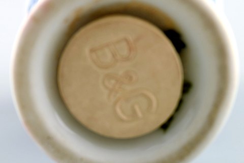 Bing & Grondahl, B&G blue fluted. Salt and pepper set. 2 sets in stock. Measures: 8 cm. x 4.5 cm. Early stamp. 1930s. 1. Factory Quality, in perfect condition.