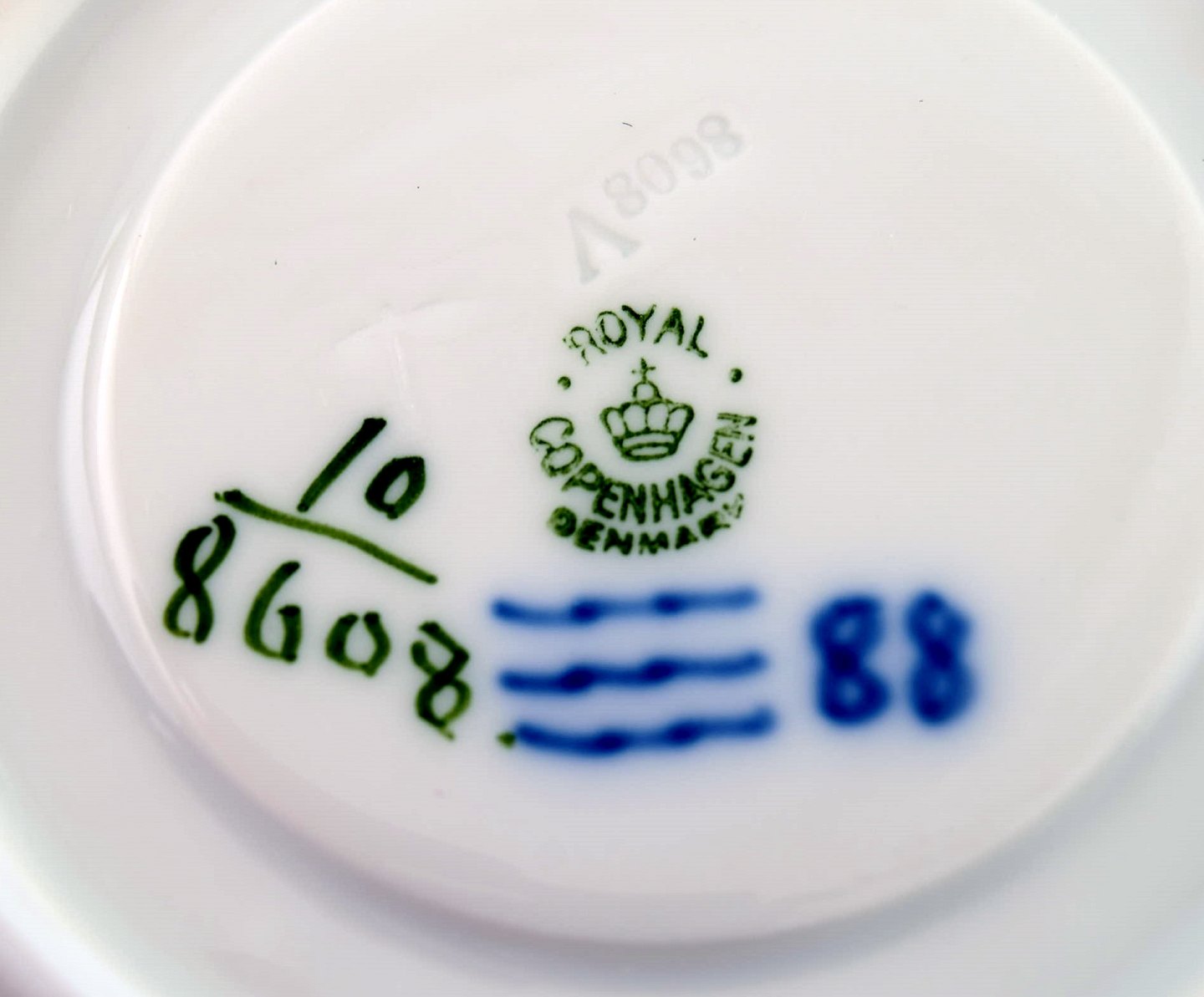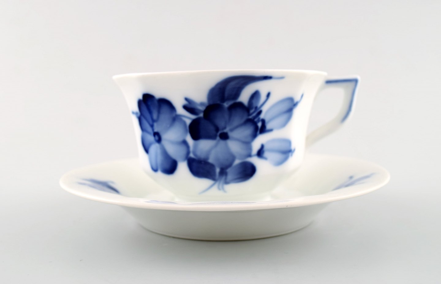6 personers Royal Copenhagen blå blomst kantet. 6 kaffekopper med tilhørende underkopper. Dekorationsnummer 10/8608. 1. sortering. I perfekt stand. Diameter 8,5 cm.