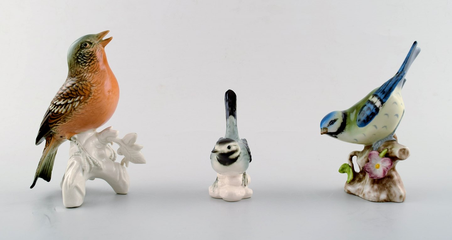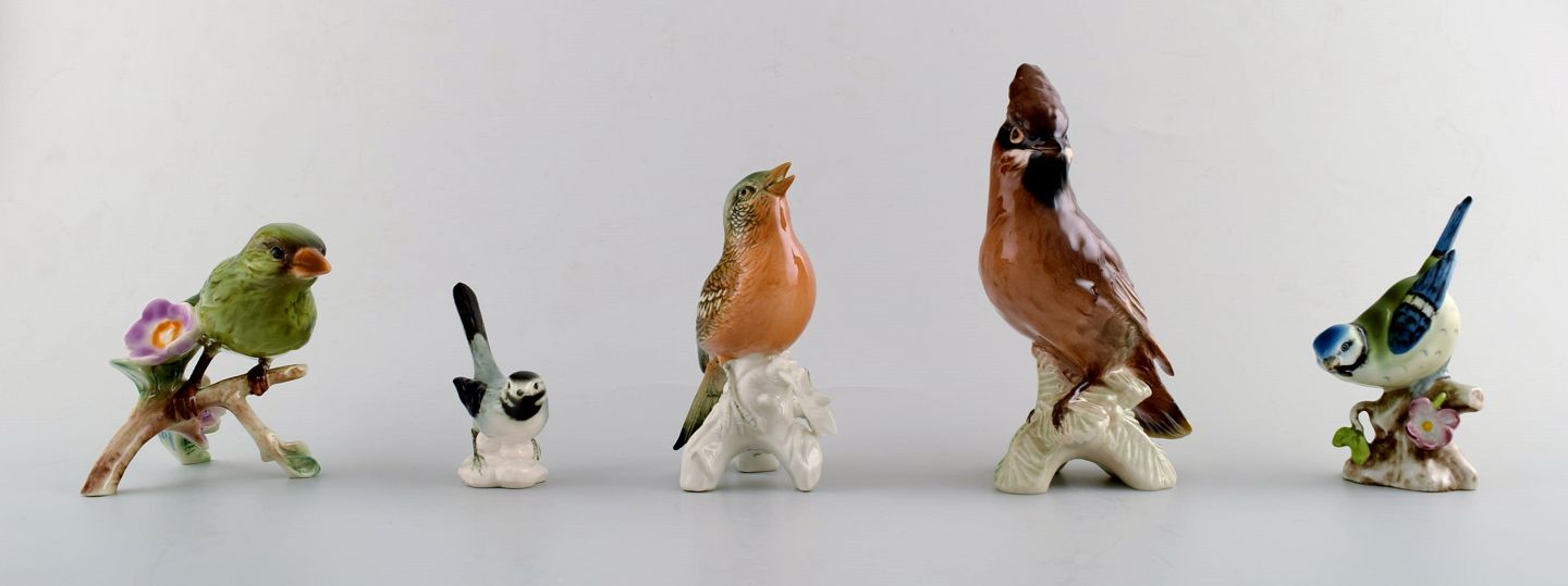 Goebel, Tyskland. Fem fugle, håndmalet. Måler 17 x 10 cm. (største) Stemplet. I perfekt stand.
