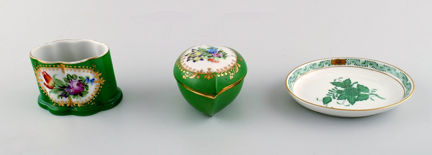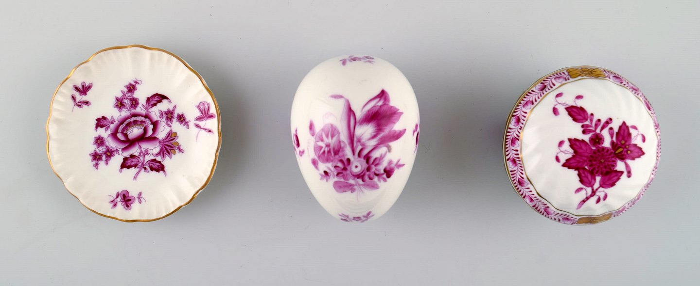 8 Herend, Ungarn lågvaser/vaser/fade dekoreret med blomster, guldkant, porcelæn.