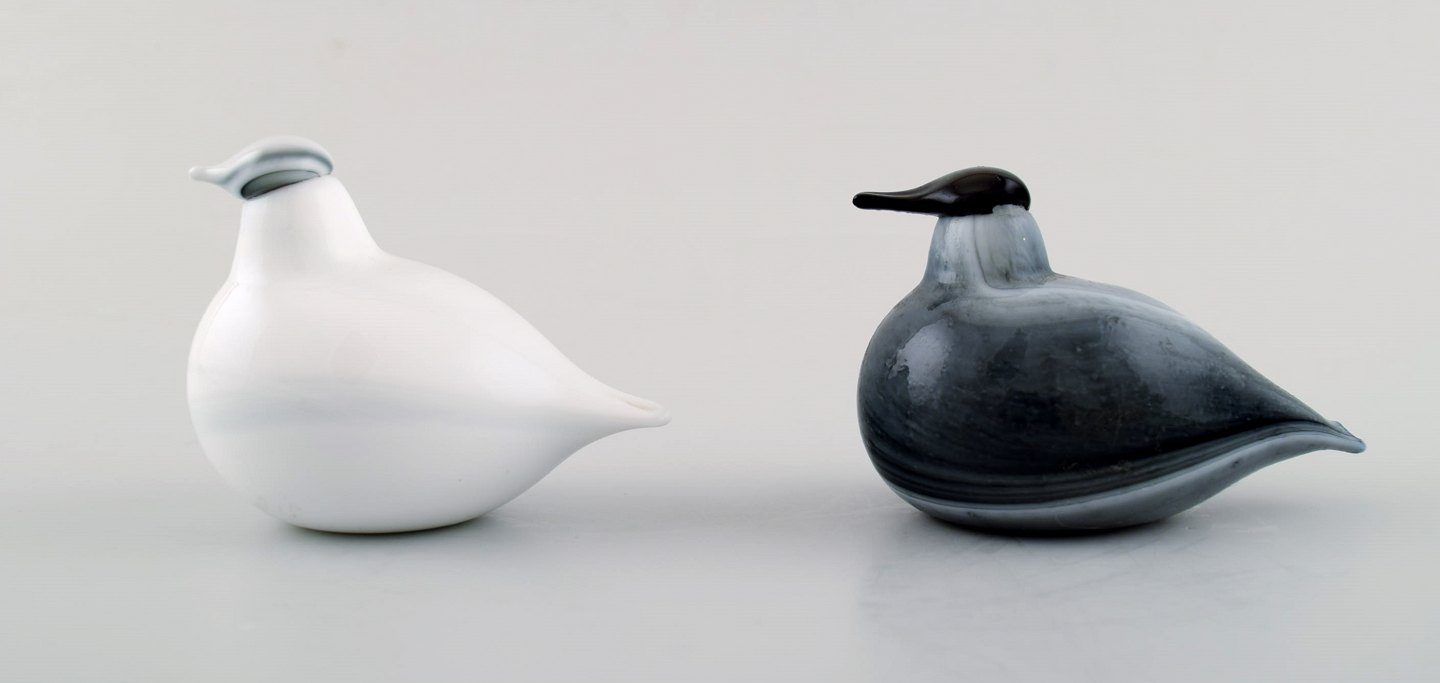 5 Kunstglas fugle, Nuutajärvi Notsjö, Finsk design. Designet af Oiva Toikka. Måler 17 cm. x 9 cm. (største) Signeret. I perfekt stand.