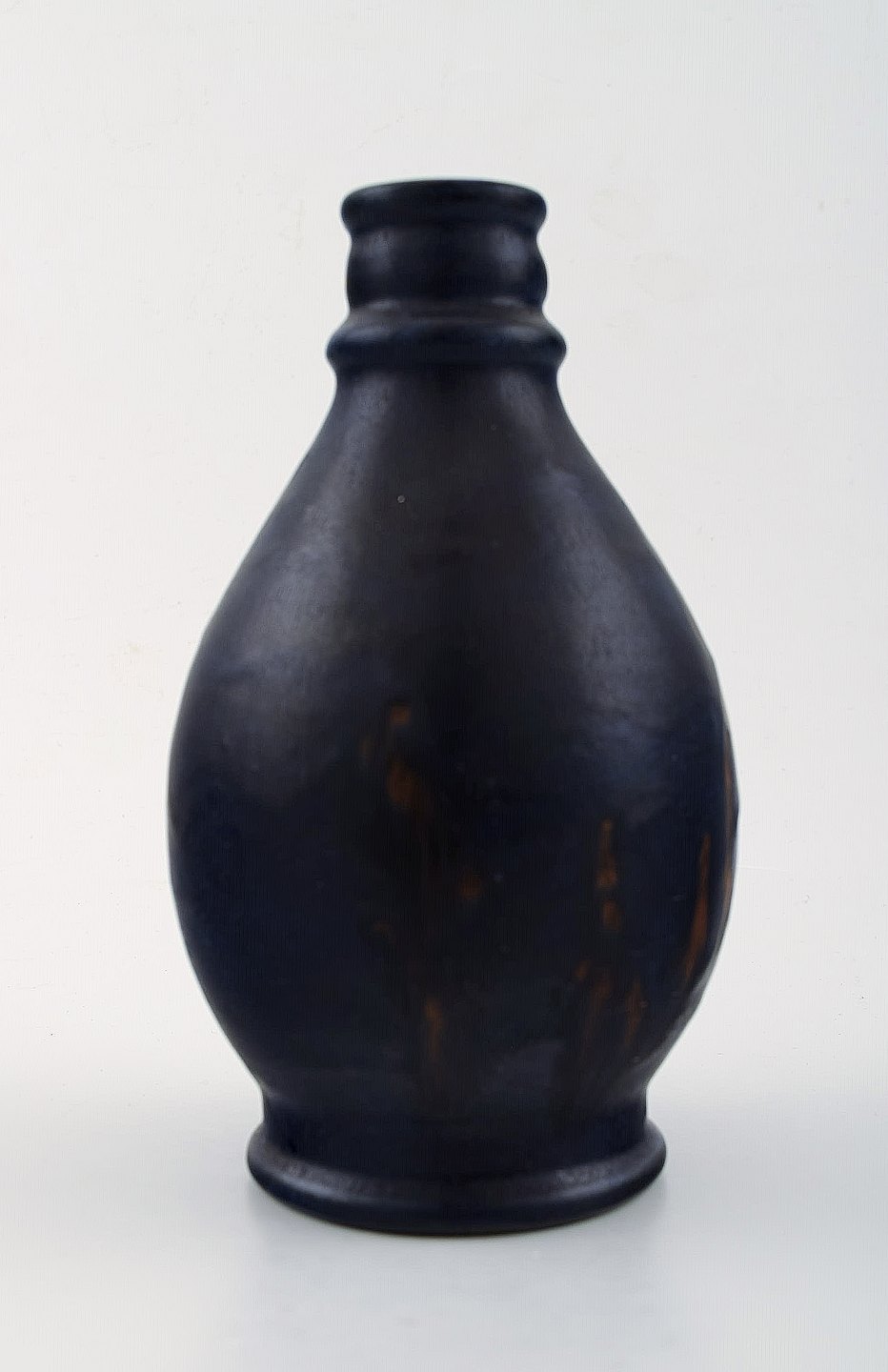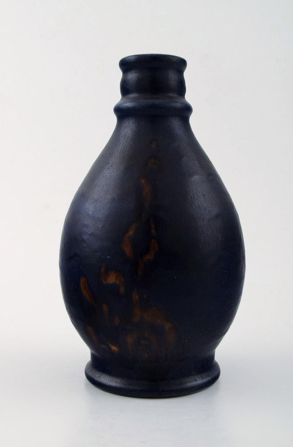 Ipsens, Denmark. Artist signature KB, ceramic vase. Beautiful dark blue glaze. Measures: 16.5 cm. x 10 cm. In perfect condition. Stamped.