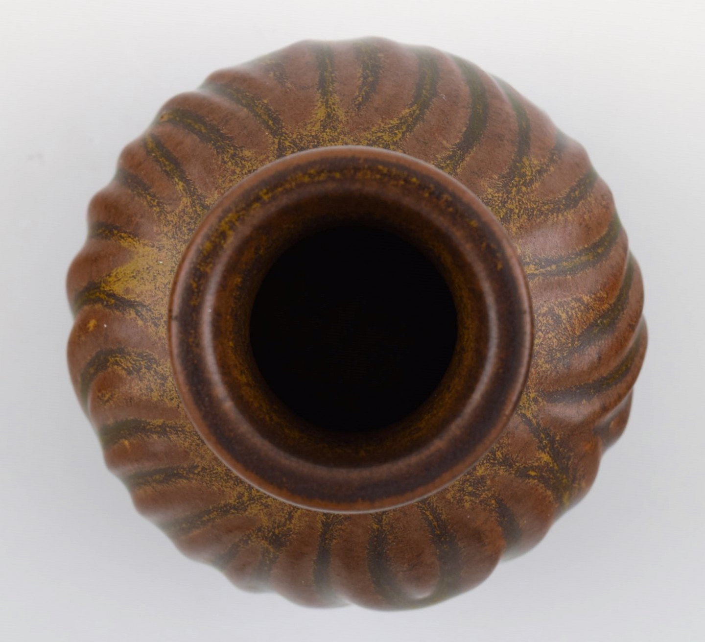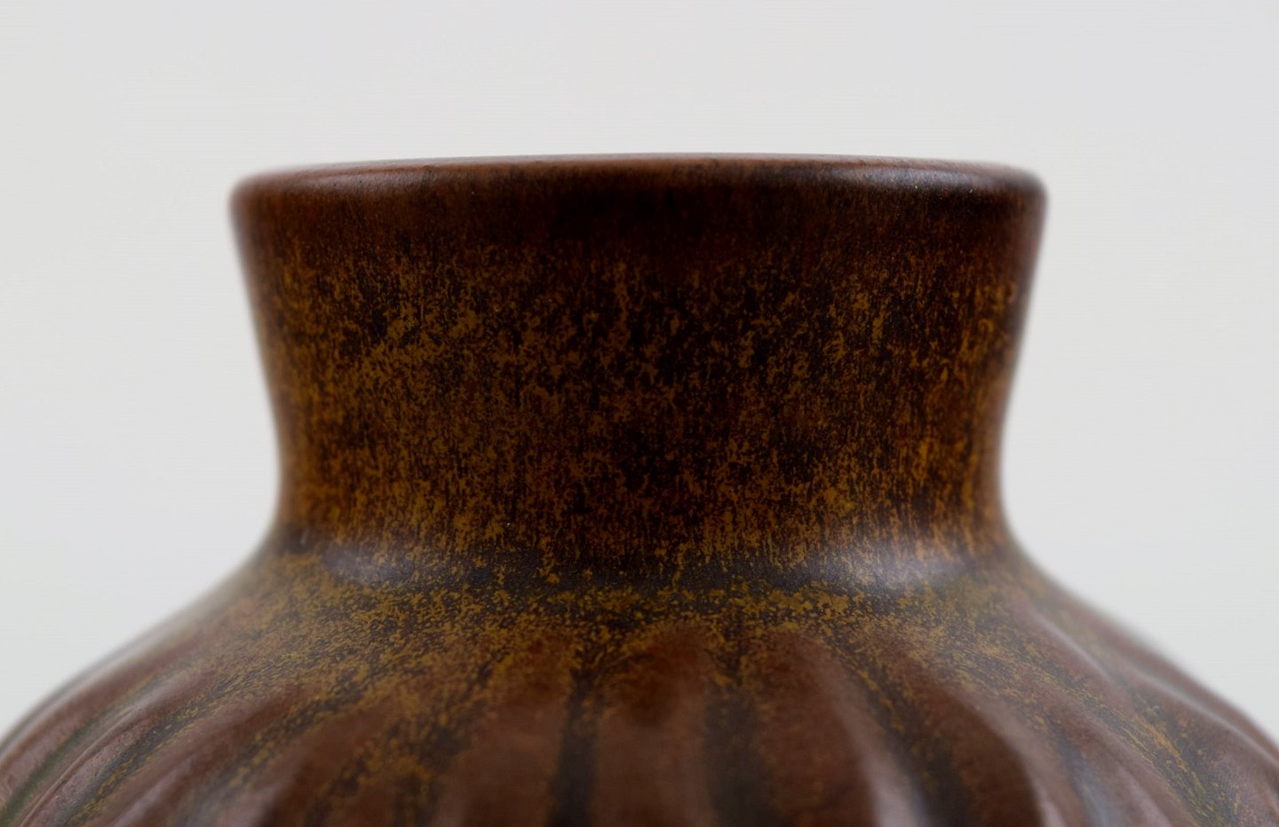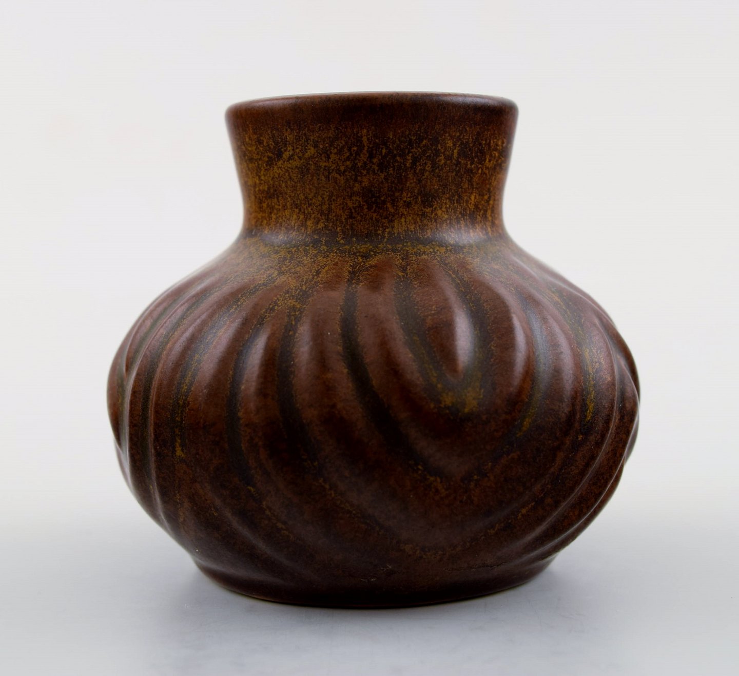 Hjorth (Bornholm) glazed stoneware vase in modern design. Fine glaze in brown shades. Measures: 7 cm. high. 7 cm. wide. Signed Hjorth. In perfect condition.