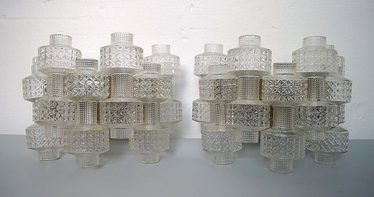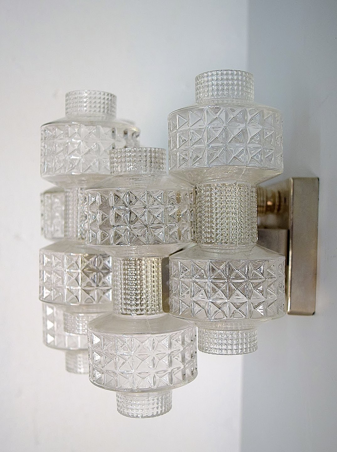 Swedish designer: A pair of wall lamps with glass screens. In perfect condition. Measures: 30 cm. x 22.5 cm. For 3 light bulbs.
