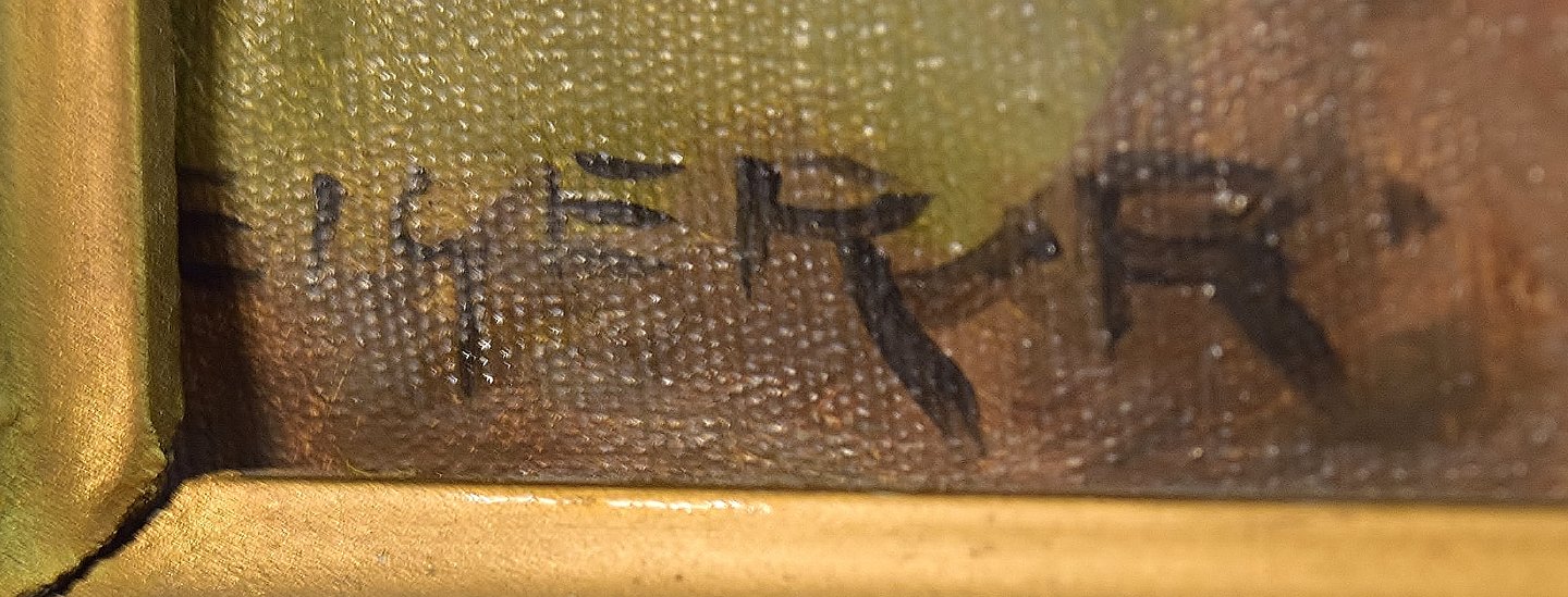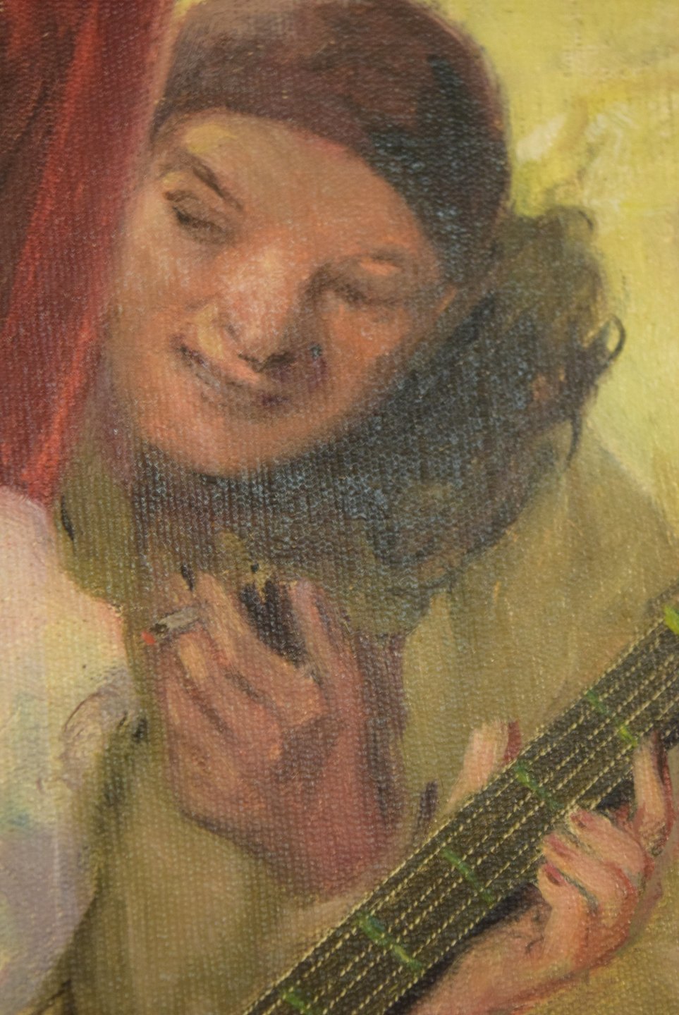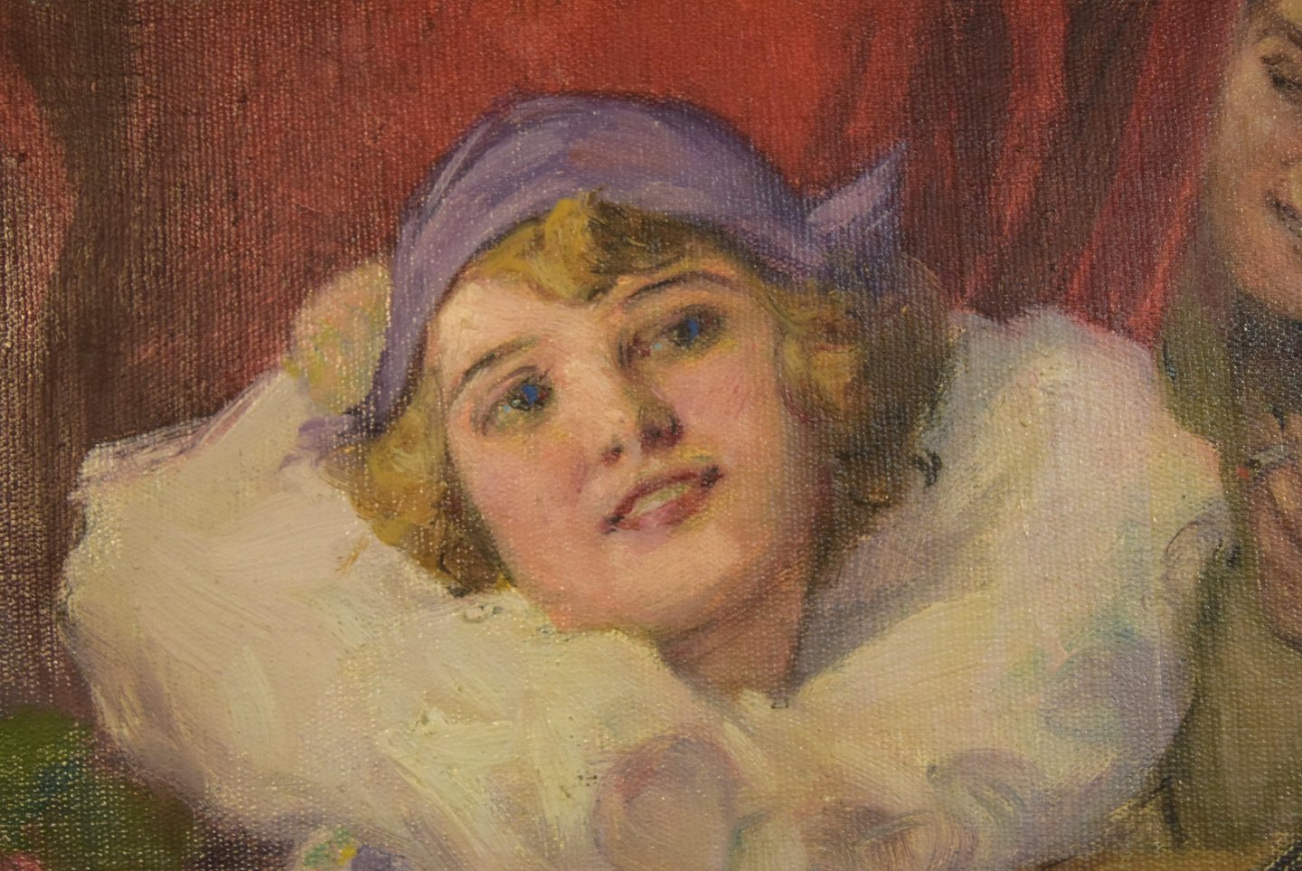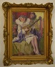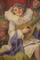 Richard Geiger. 1870 Vienna - 1945 Budapest. Harlekin and Columbine, 1930s. Oil on canvas laid on board. Signed: Geiger R. Measures: 48 cm. x 32 cm. (64 x 48 cm). In excellent condition.