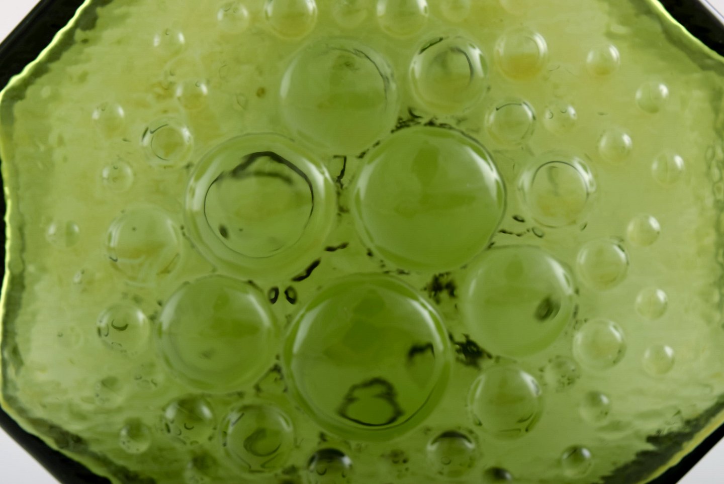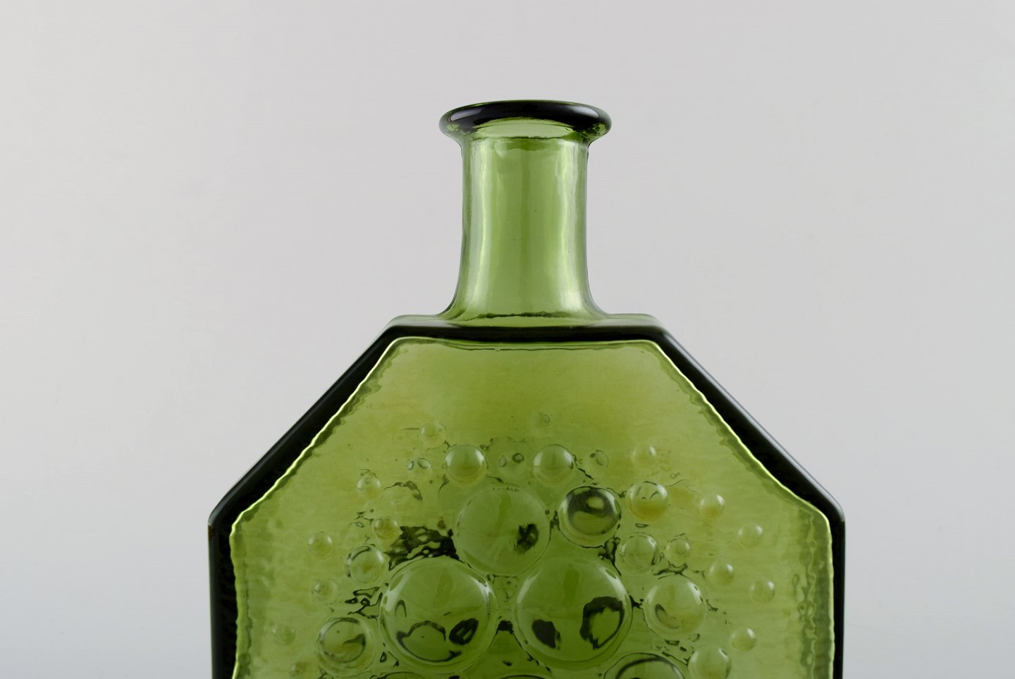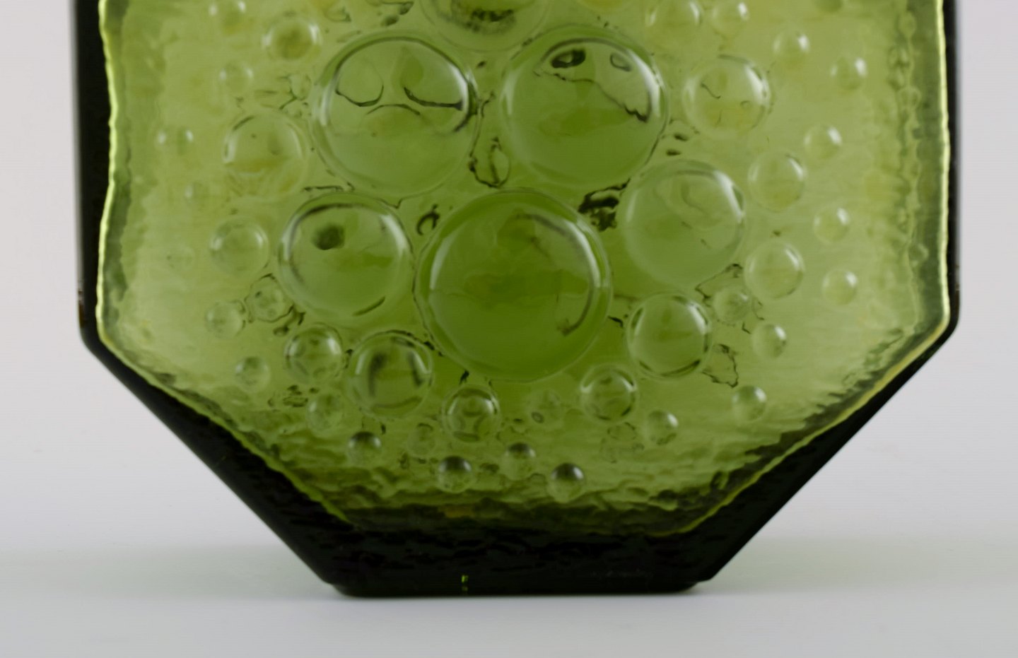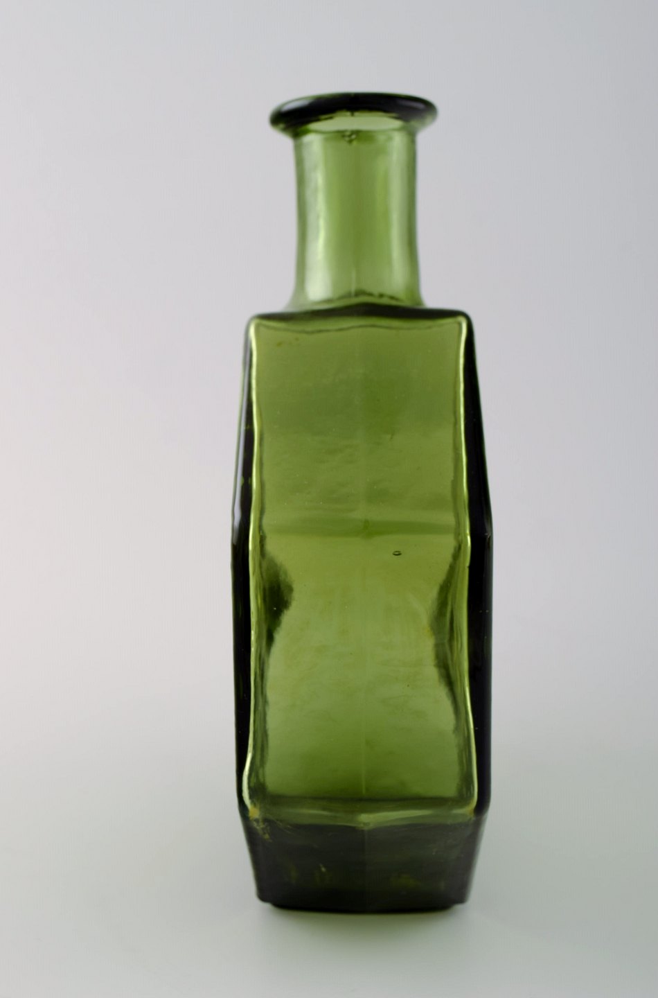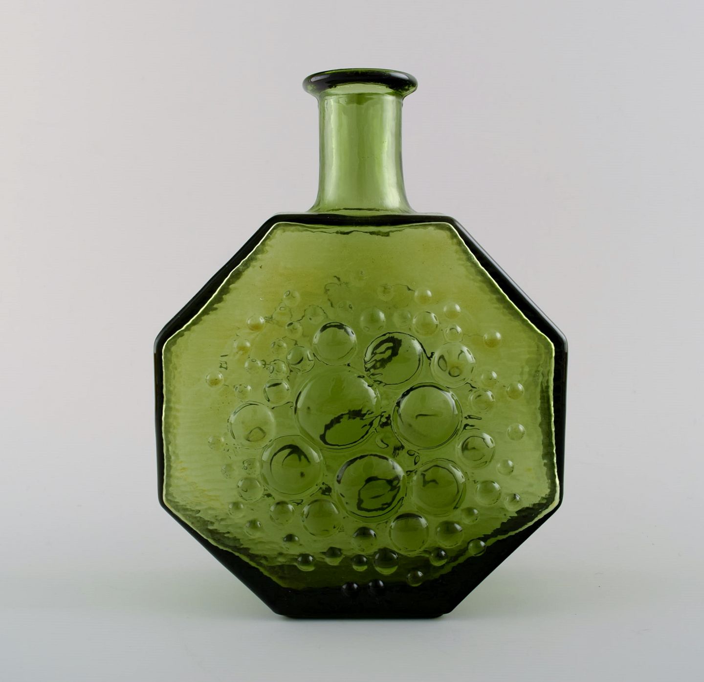 Nanny Still for Riihimäen Lasi, Finnish glass art vase. In perfect condition. Beautiful bottle green color. 1960 / 70s. Measures 18 x 15 cm.