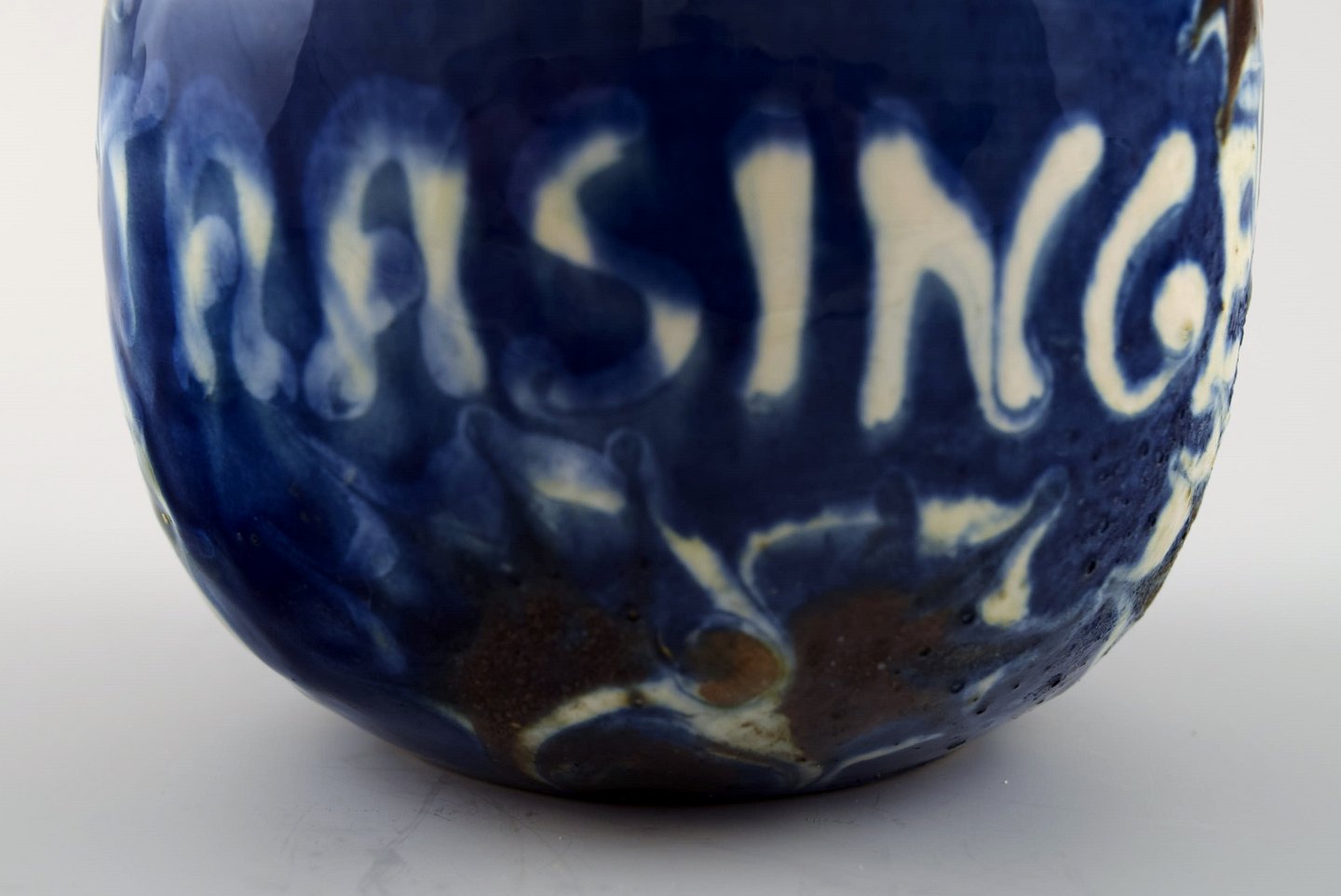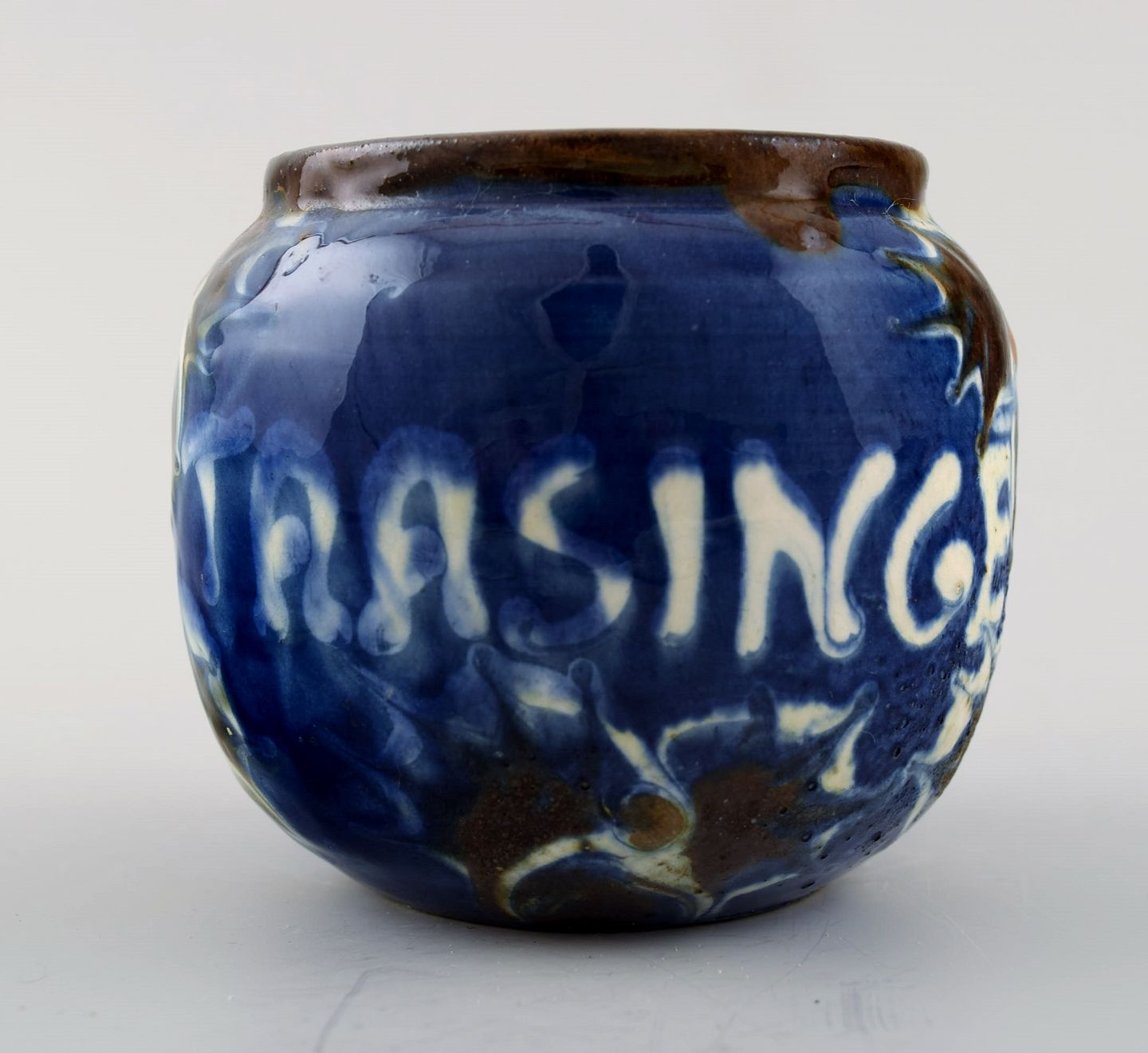 Kähler, HAK, glaseret stentøjsvase. 1940´erne. Kohorn glasur. Stemplet. Med tekst Taasinge. Måler : 8,5 cm. x 7,5 cm. I perfekt stand.