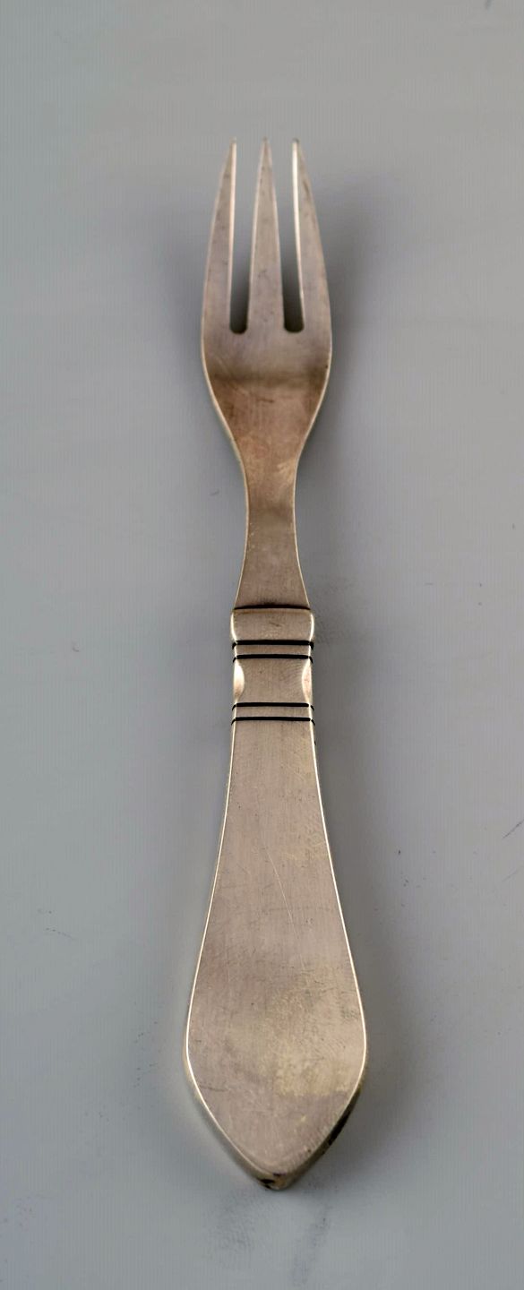 Georg Jensen. Continental (Antik) 11 kagegafler, hammerslået. Bestikket er formgivet af Georg Jensen og designet i 1906. Stemplet. I perfekt stand. Måler : 14,5 cm.