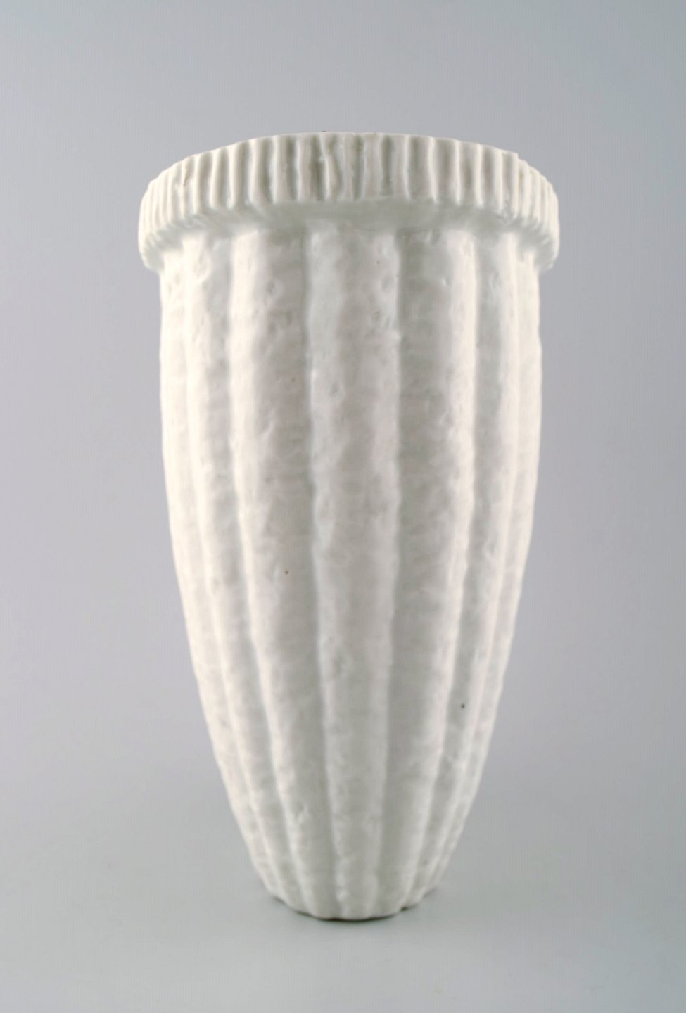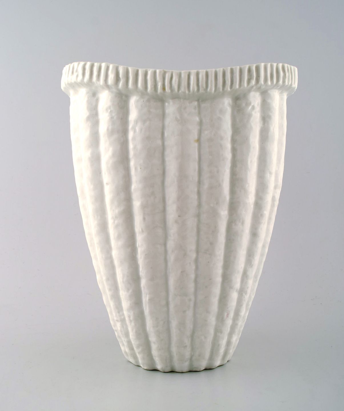 Rörstrand : Gunnar Nylund Chamotte vase. Measures: 22 cm. x 18 cm. White glaze. Marked. In perfect condition.