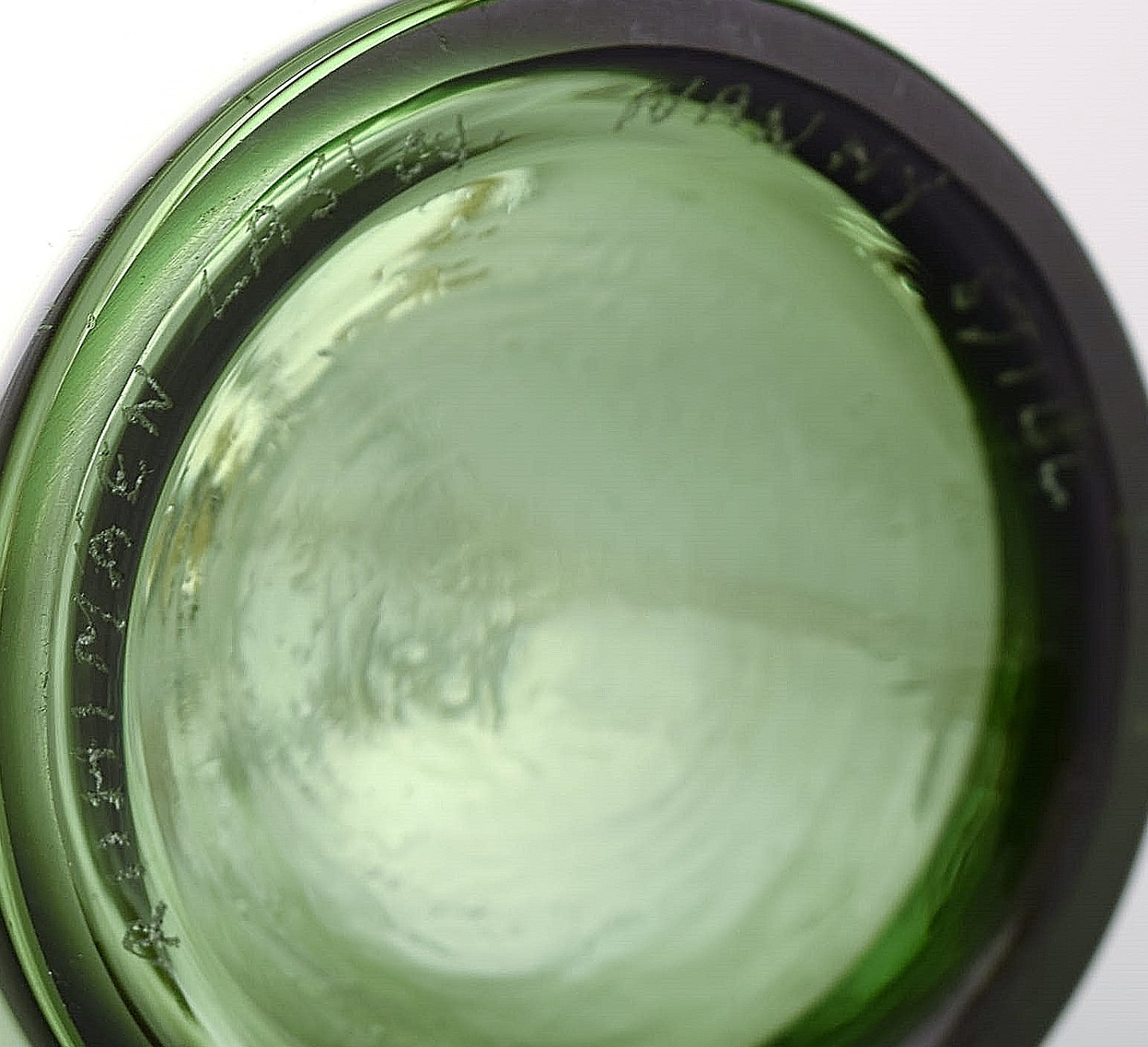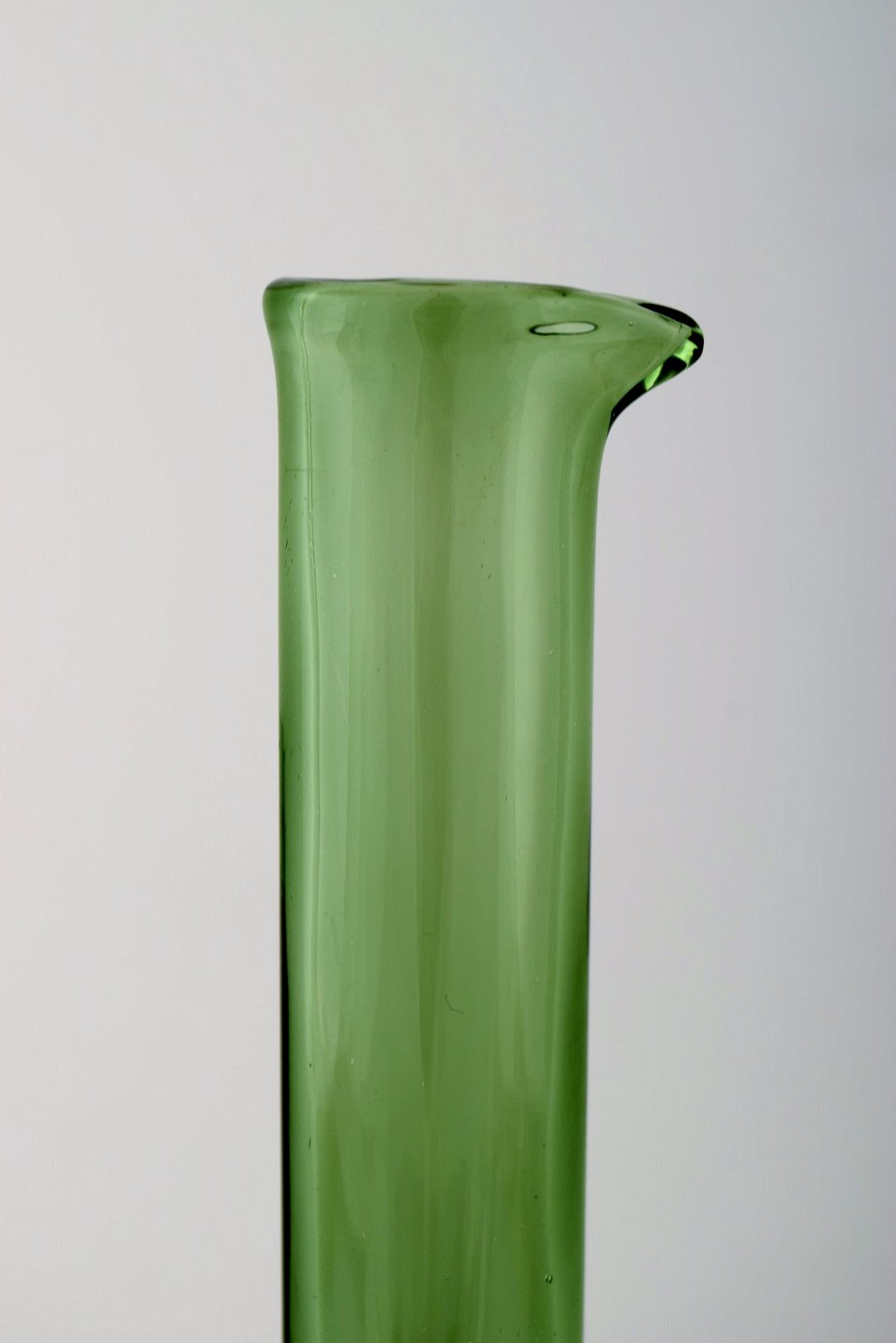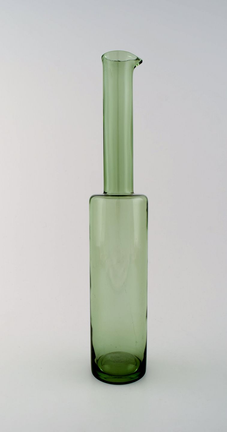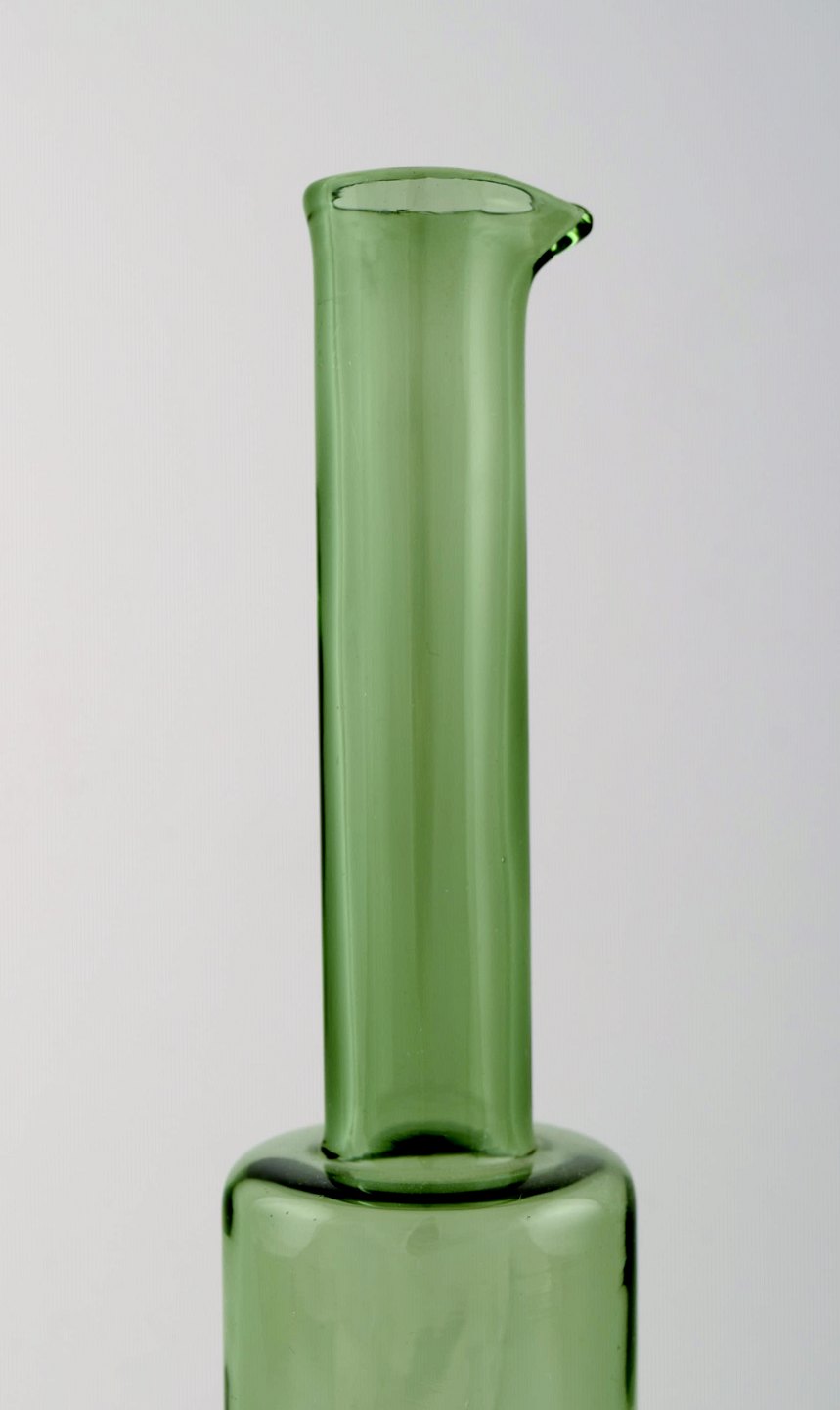 Nanny Still for Riihimäen Lasi, finsk glaskunst dekorationsflaske. I perfekt stand. Smuk grøn farve. 1960´erne. Måler 32 cm. x 6,5 cm. Stemplet.
