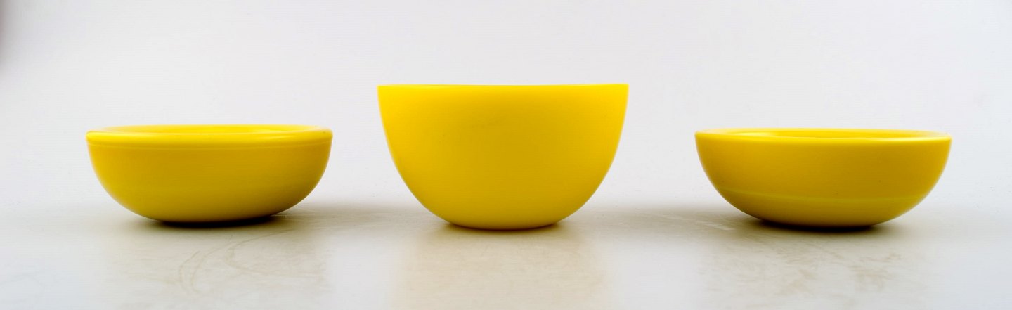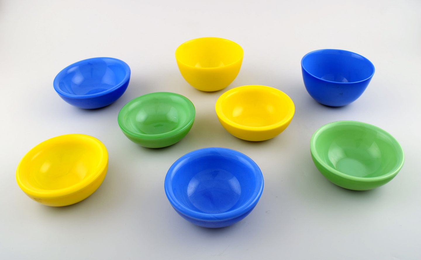 Orrefors "Colora" 8 skåle i kunstglas i forskellige farver.