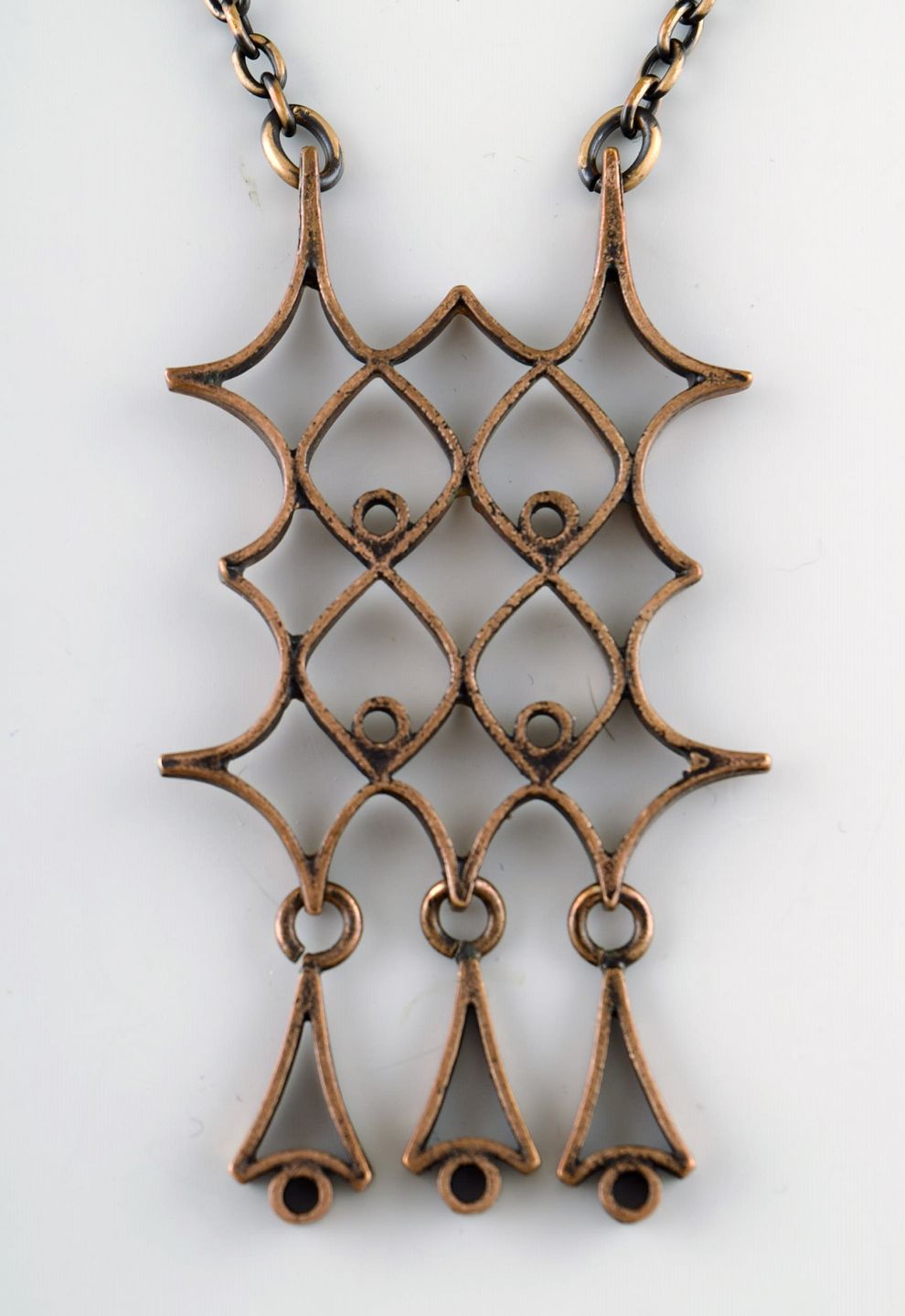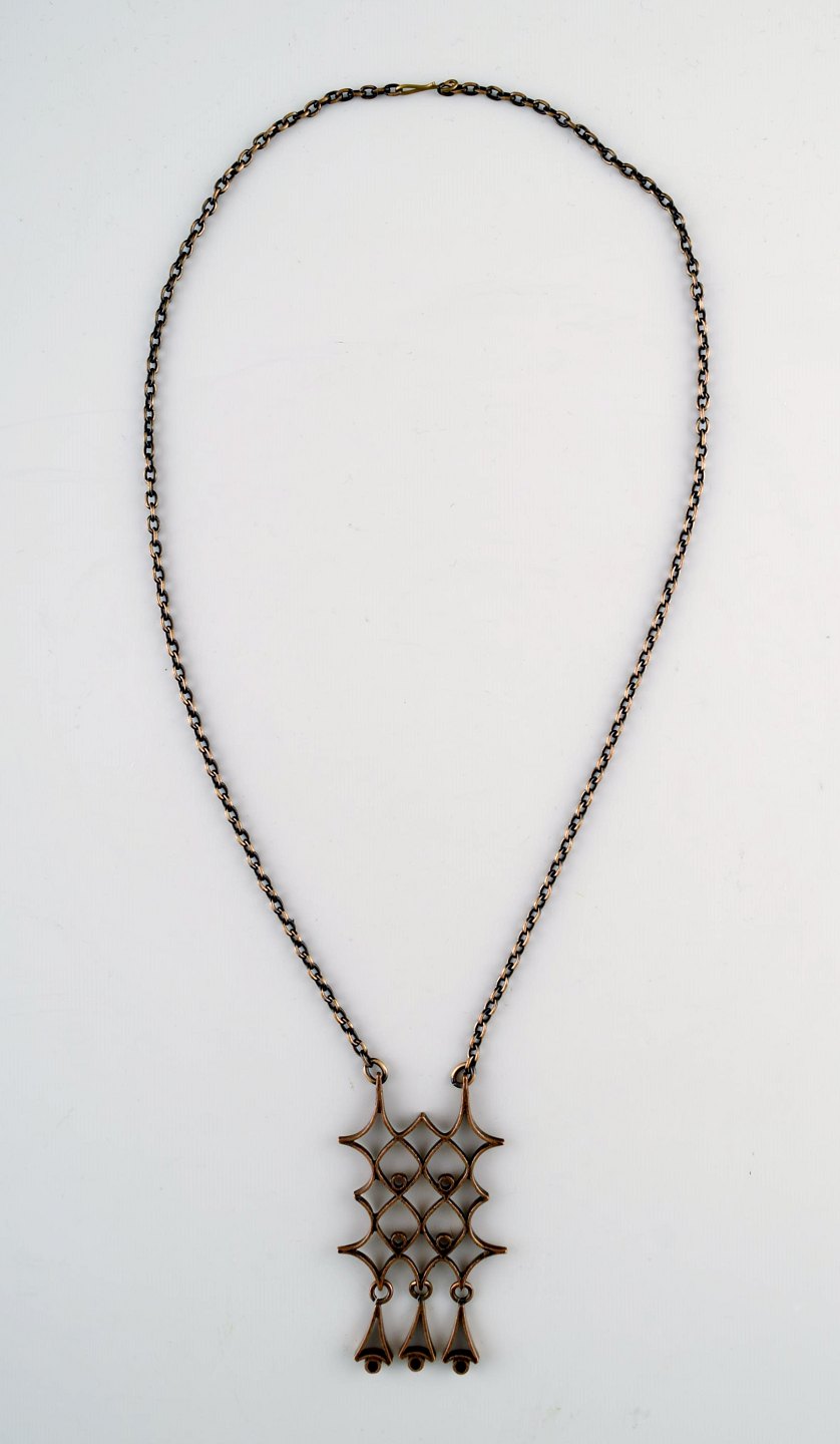 Pipa Suominen Niinimäki, Finland. Vintage modernistisk stor halskæde i bronze, håndlavet.