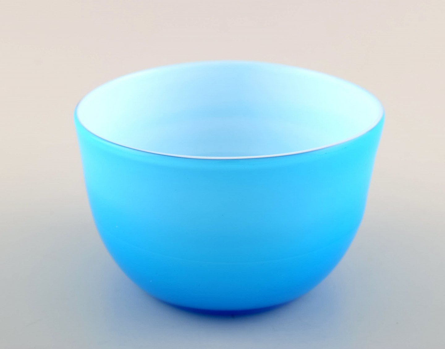 Holmegaard, Palet skål fremstillet af turkis og hvidt opalglas. Design: Michael Bang. Måler 12,5 x 8 cm. I perfekt stand.