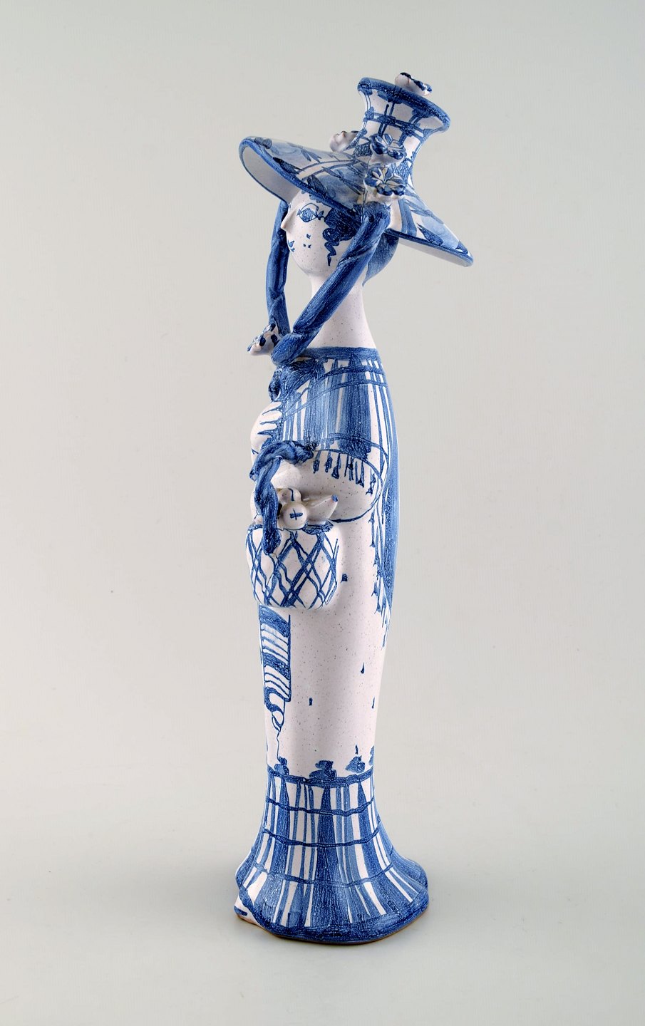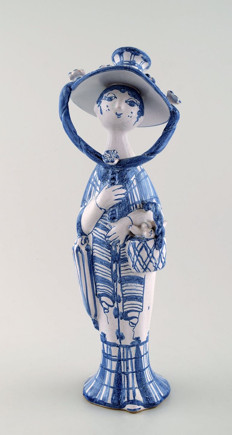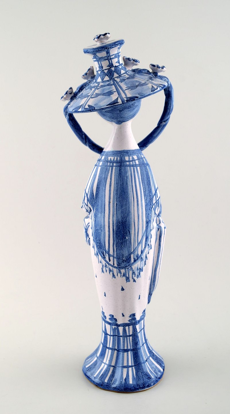 Bjørn Wiinblad unik keramik figur fra Det blå hus. "Efterår" i blå "Årstiderne" fra 1970. 32,5 cm. høj. Perfekt stand. Jeg har alle 4 figurer fra "Årstiderne".