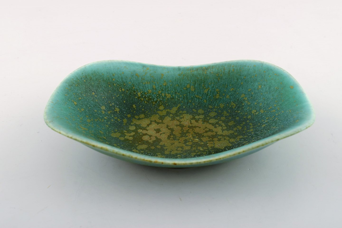 Rörstrand / Rorstrand Gunnar Nylund ceramic bowl. Beautiful green speckled glaze. Measures 16.5 cm. x 10.5 cm. x 3.5 cm. Stamped. In perfect condition. 1st. assortment.