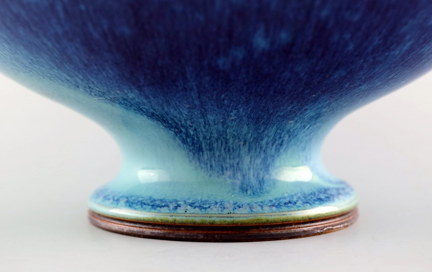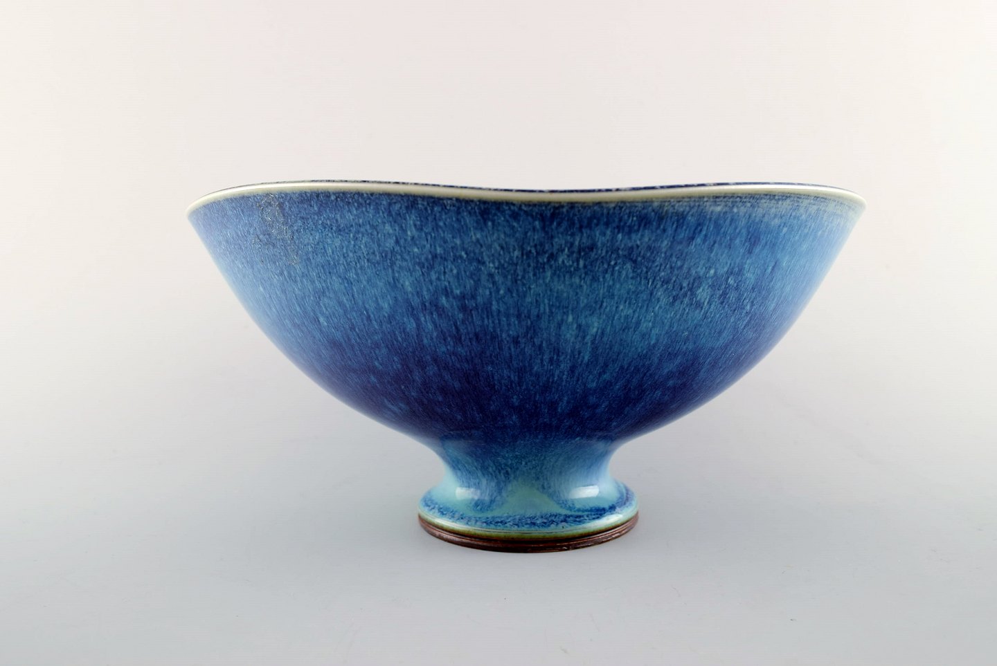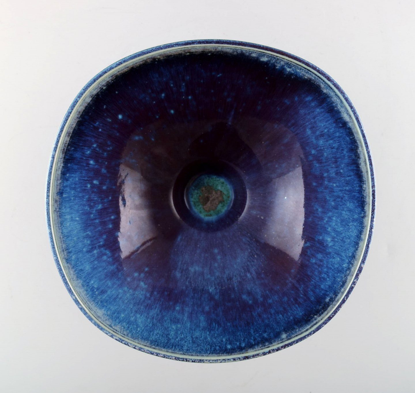Berndt Friberg Studio large ceramic bowl. Modern Swedish design. Unique, handmade. Amazing glaze in blue / turquoise nuances. Perfect. 1st. factory quality. Measures 18,5 x 10 cm.