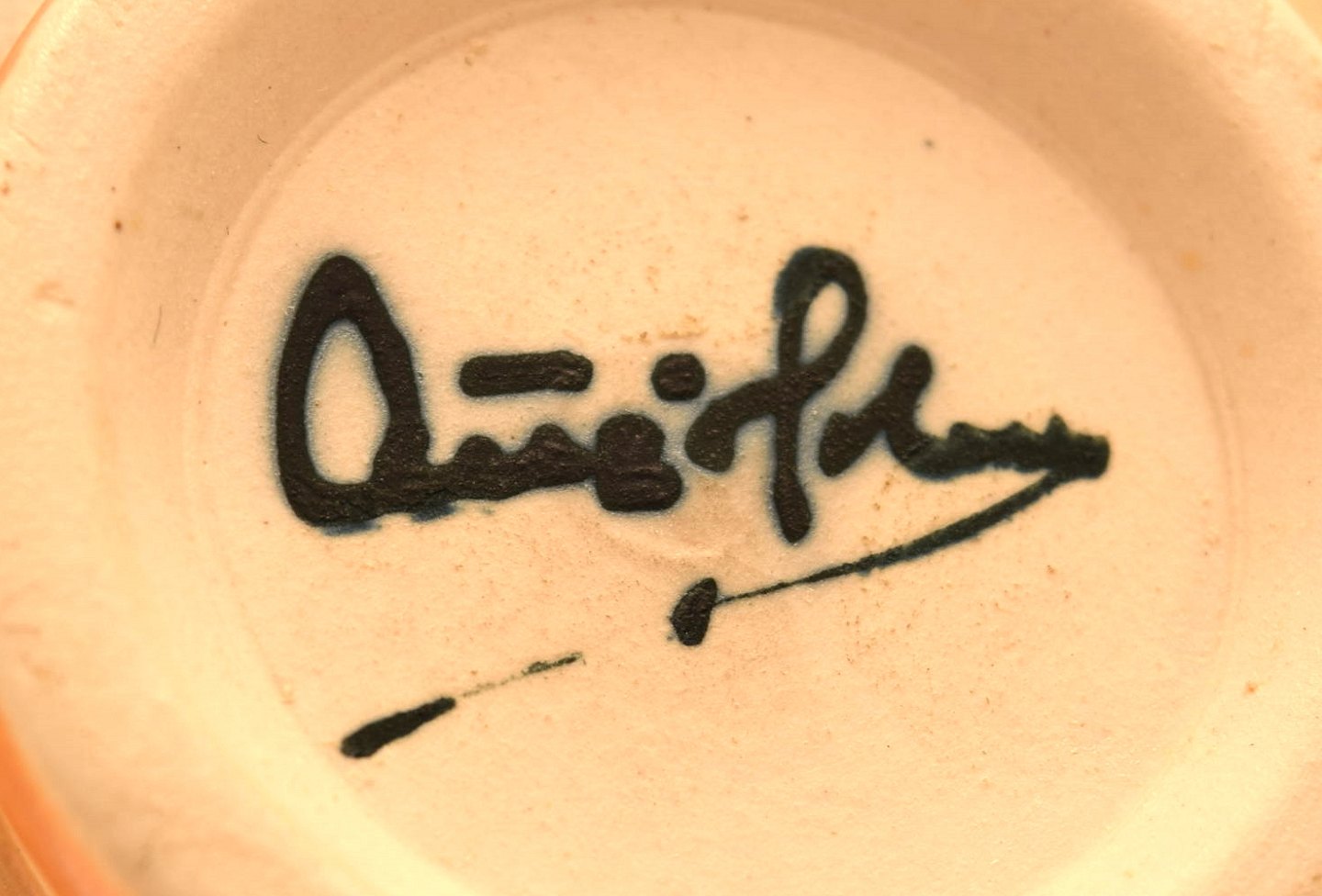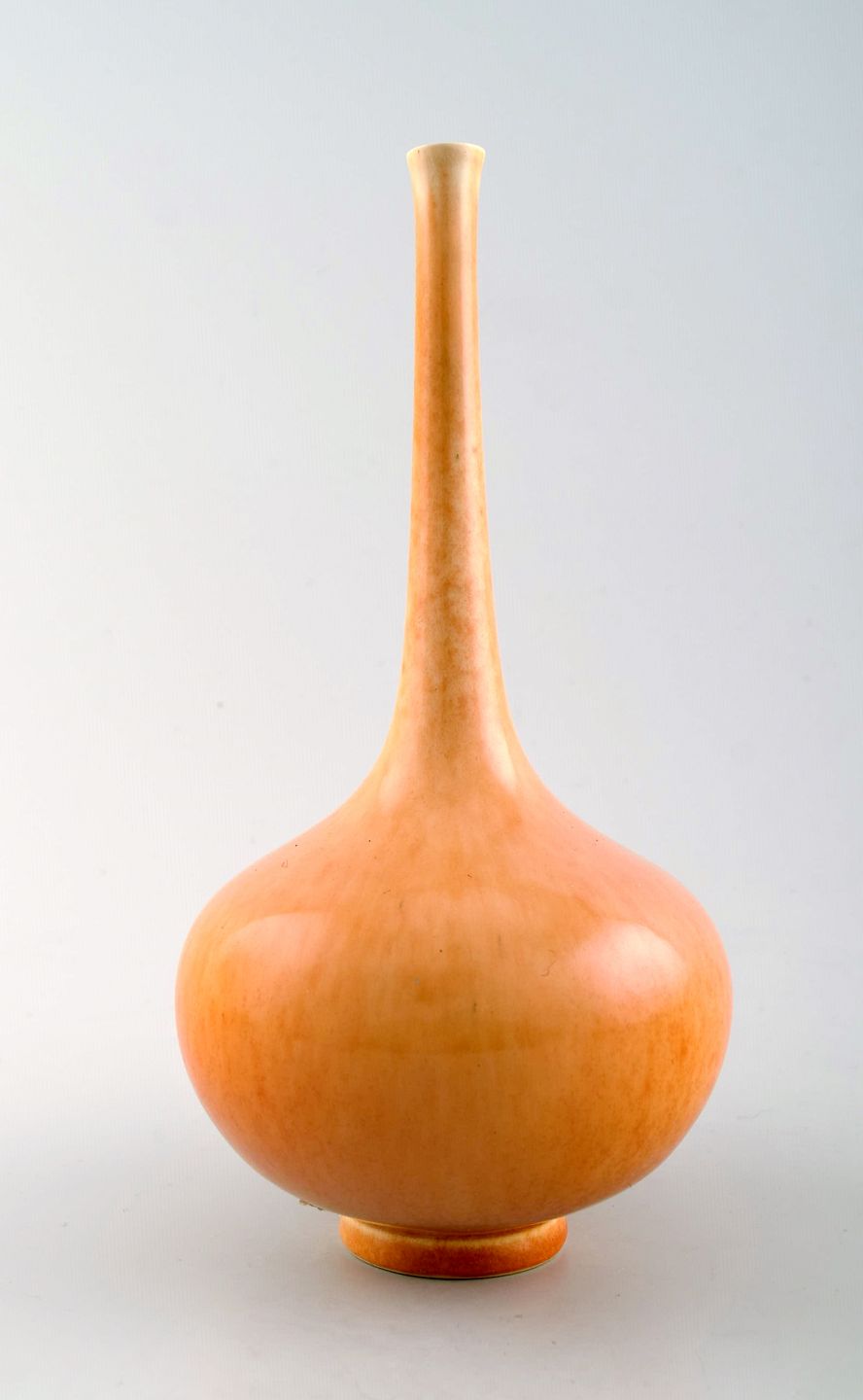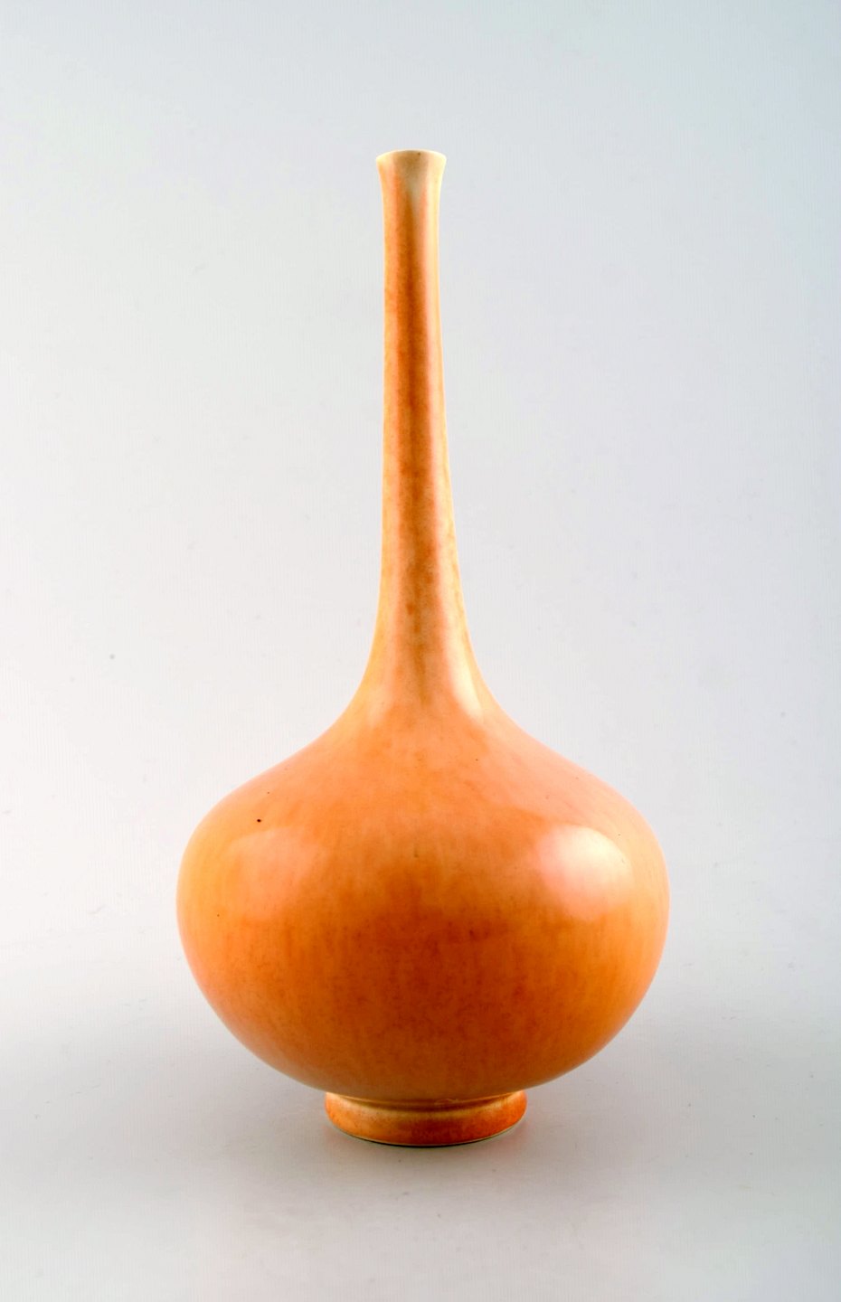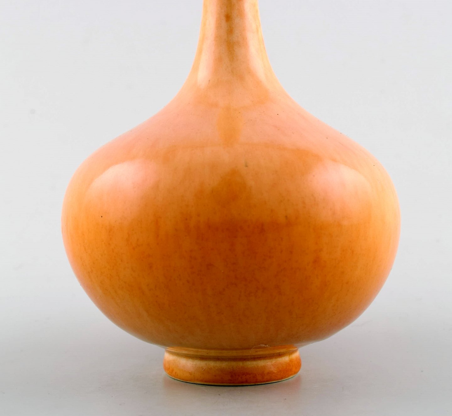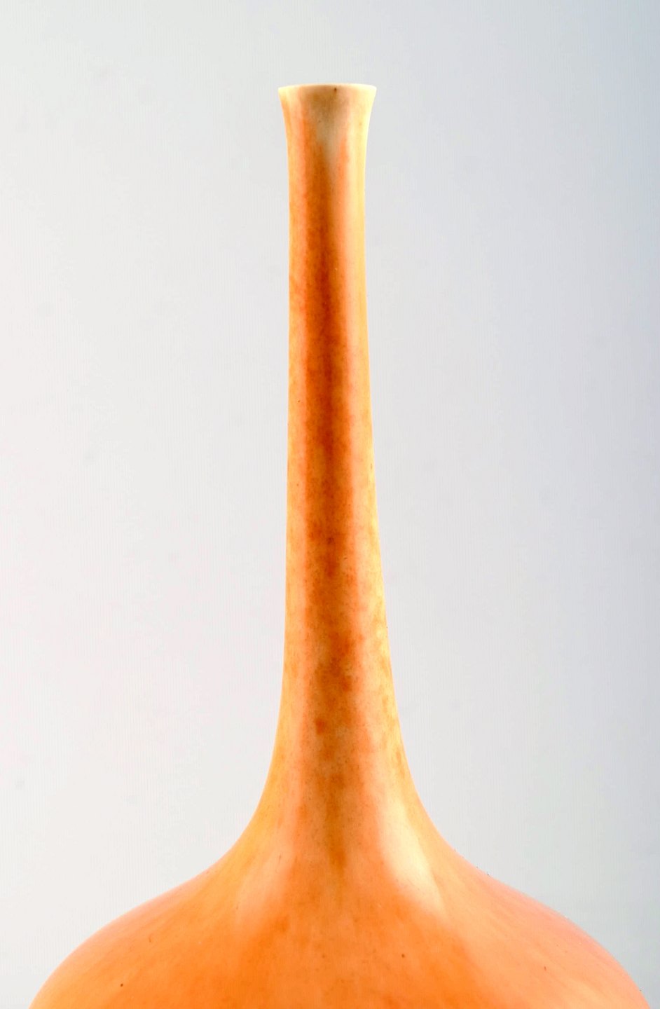 Scandinavian ceramist. Unique ceramic vase with narrow neck in yellow tones. Approx. 1980s. Signed illegible. Holm ? In perfect condition. Measures: 20 cm. x 11 cm.