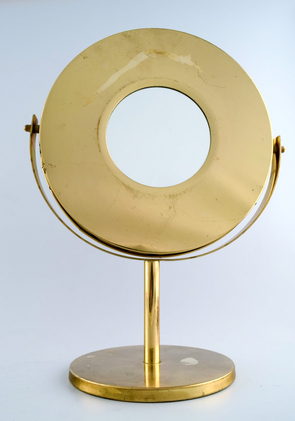 HANS-AGNE JAKOBSSON. Table mirror / make-up mirror of brass. Designed approx. 1960s. Sweden. In perfect condition. Measures: 38 cm. x 27 cm. Label sticker.