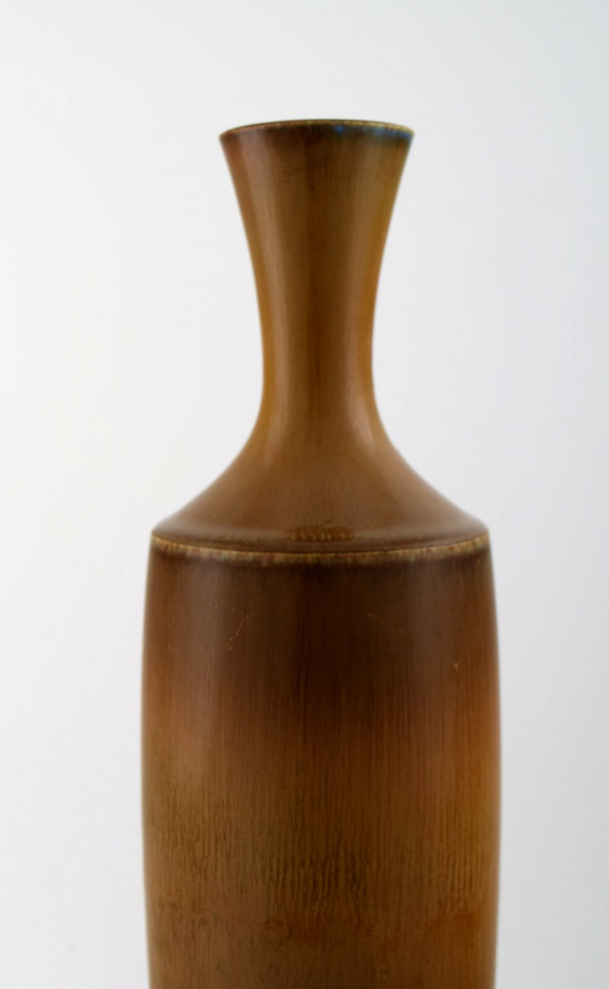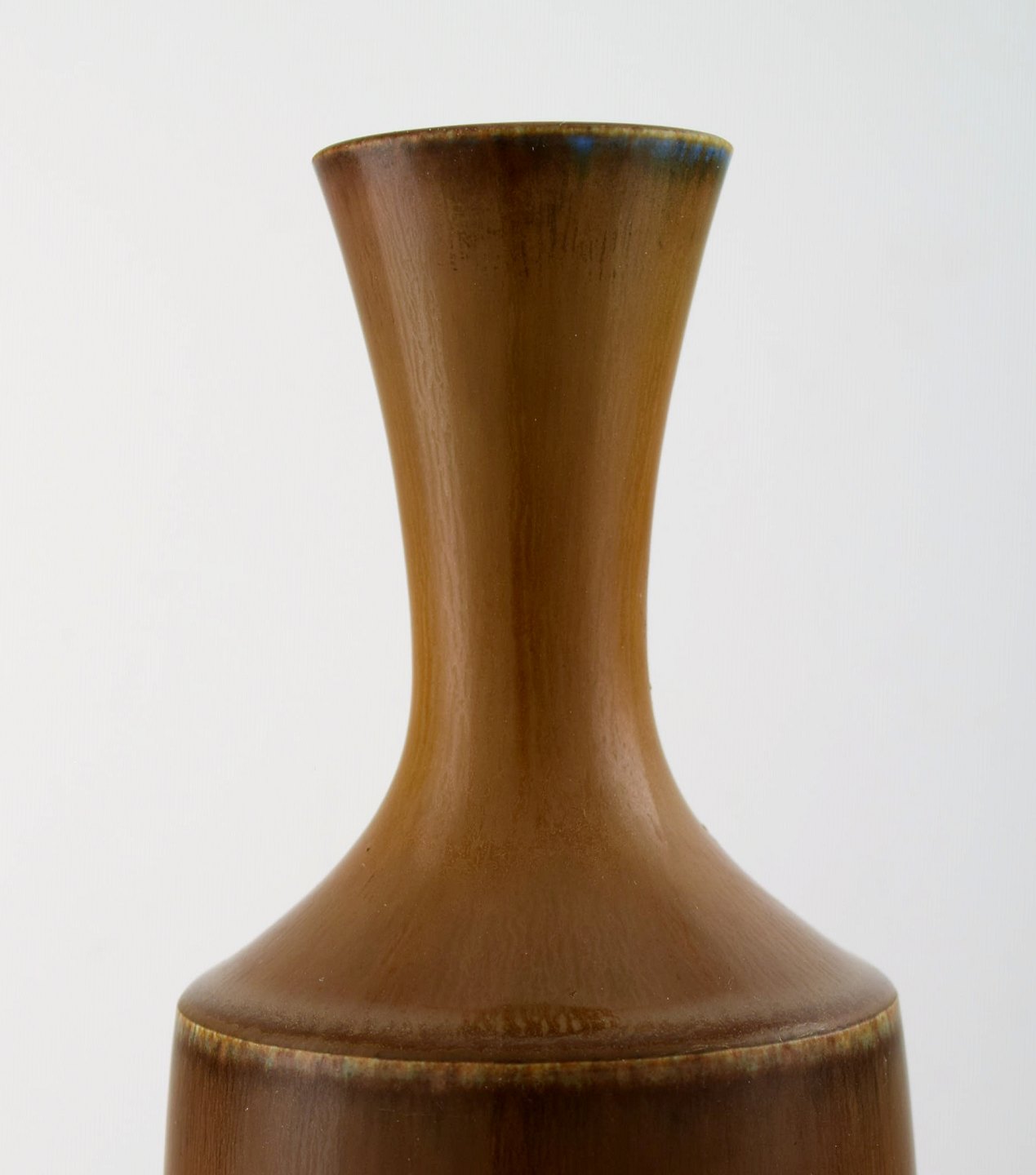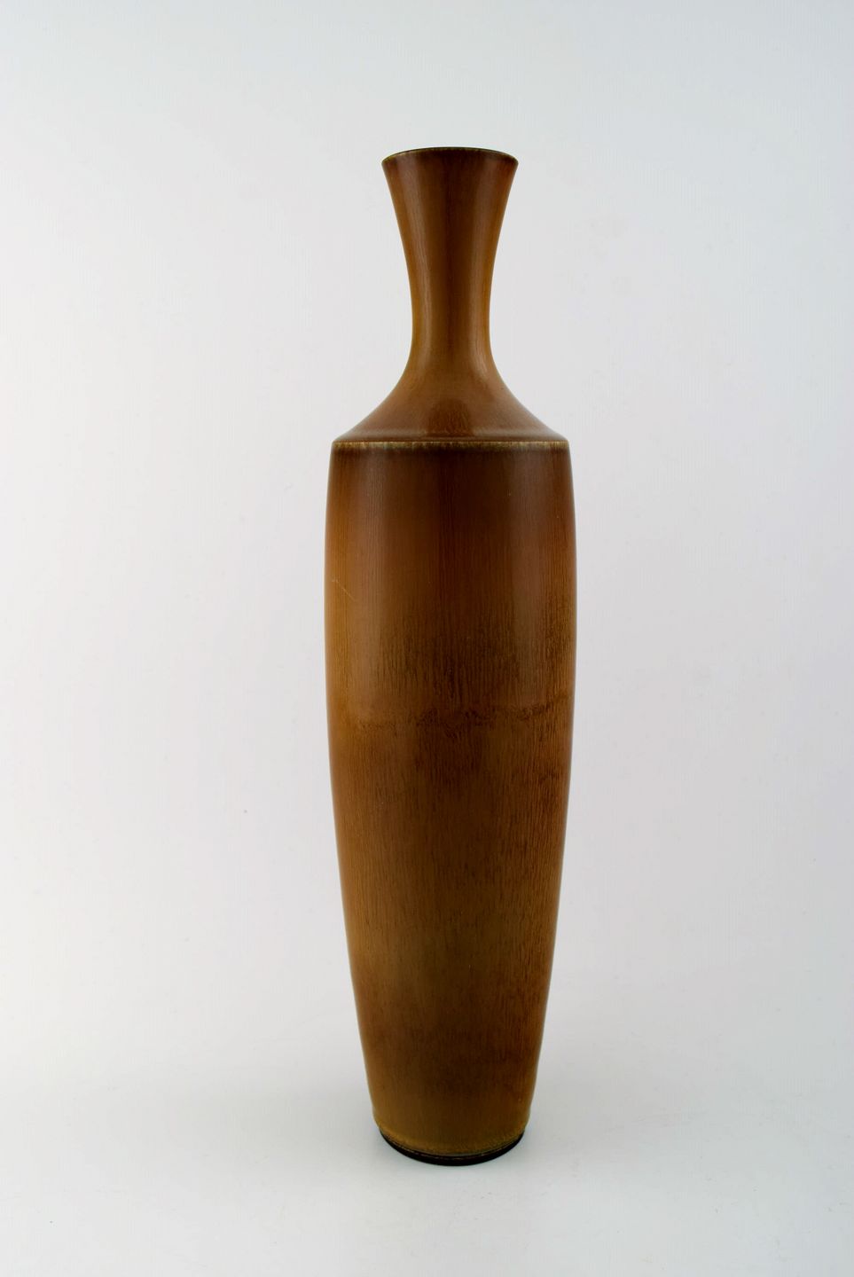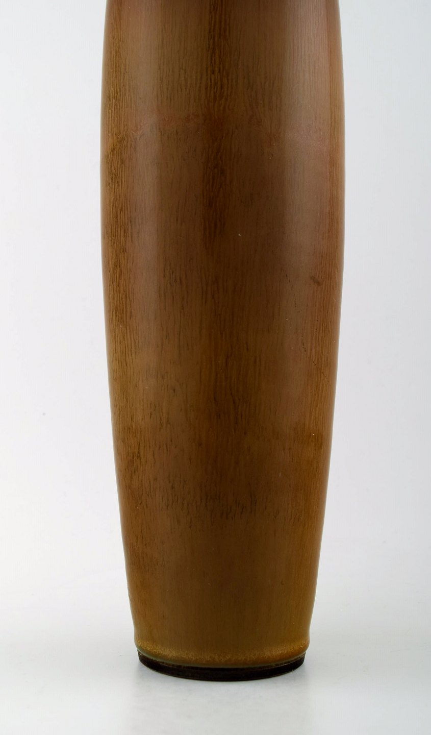 Large Berndt Friberg Studio art pottery vase. Modern Swedish, mid 20 c. Unique, handmade. Amazing glaze in shades of brown! Perfect. 1st. factory quality. Measures: 35.5 x 9 cm.