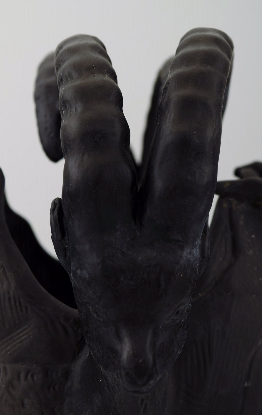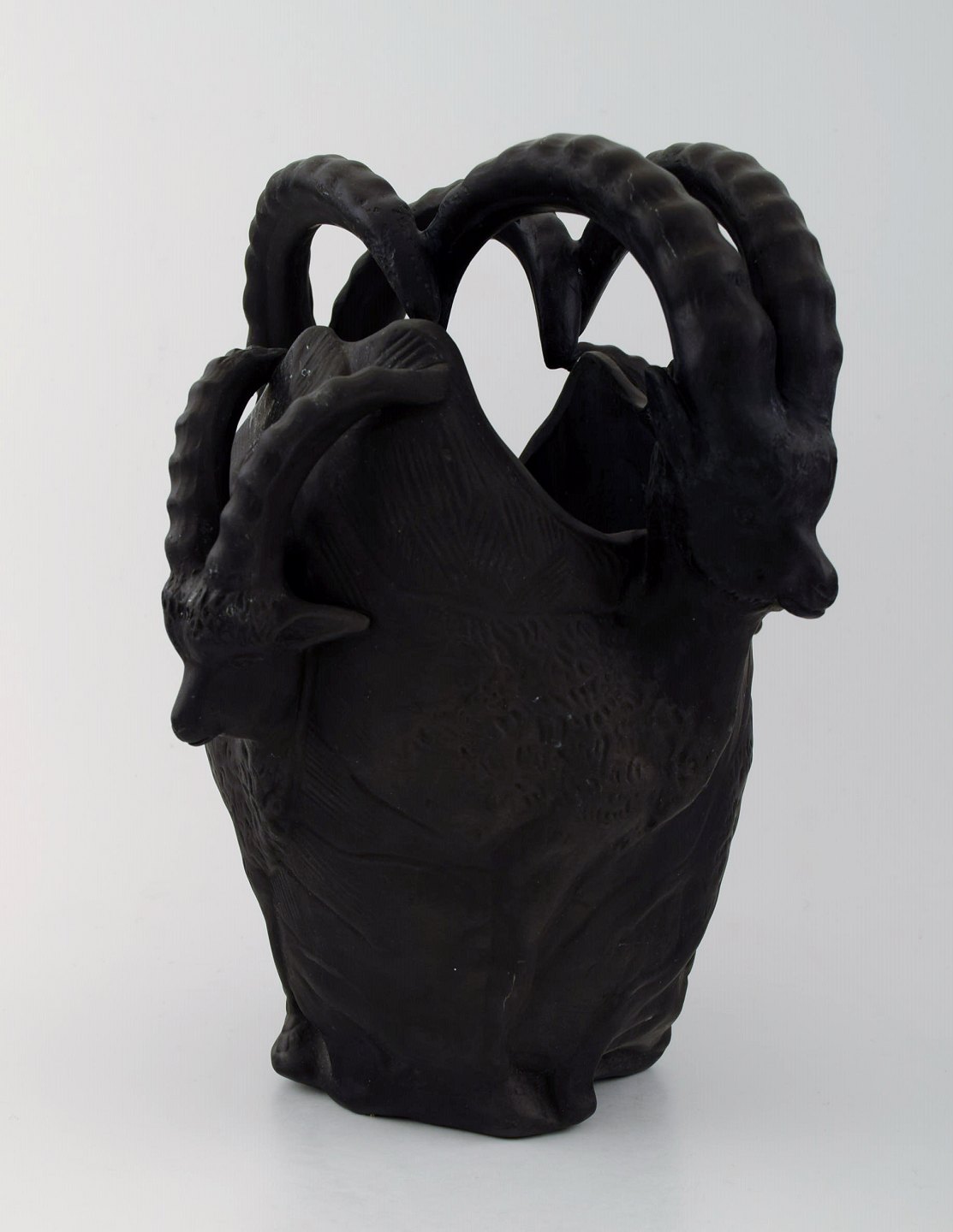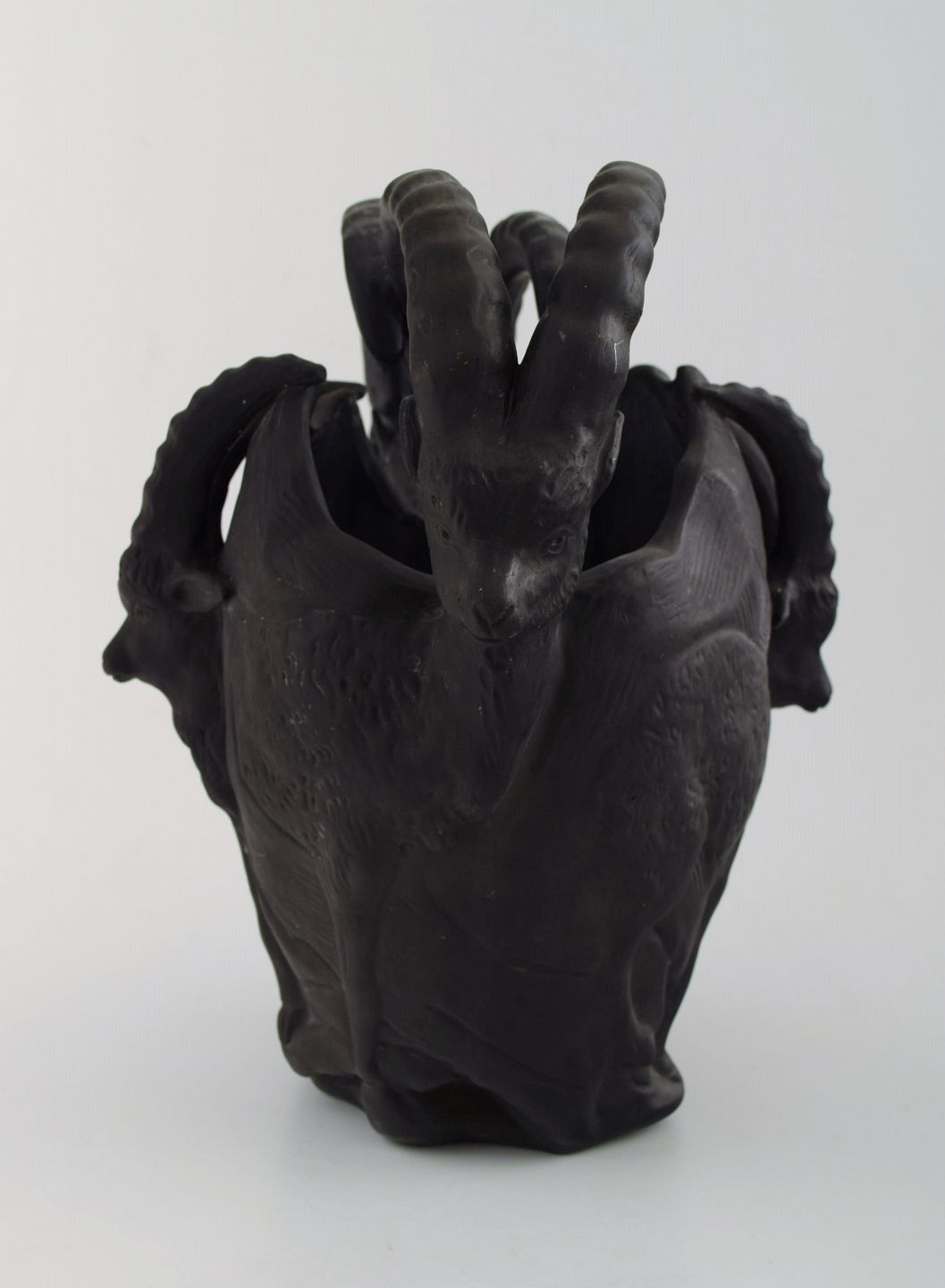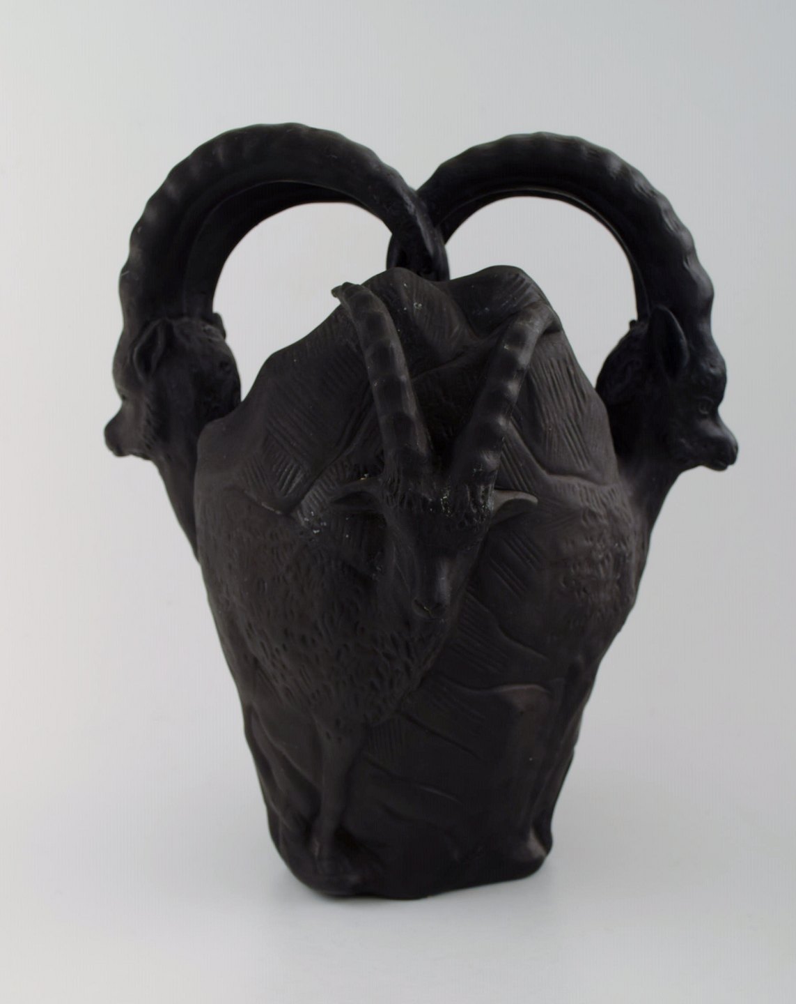 Hjorth, Denmark, Art Nouveau vase in terracotta, Capricorns. Approx. 1900. Measures: 23 cm. x 21 cm. In perfect condition. Stamped.
