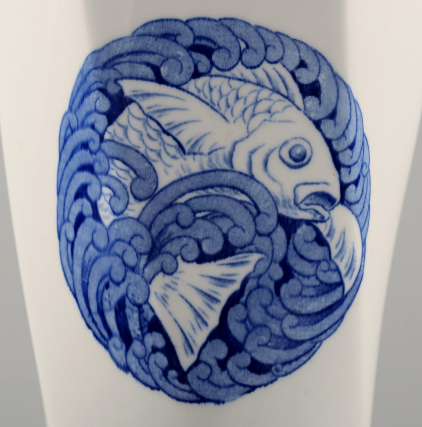 Rörstrand, stor vase i fajance dekoreret med fisk.