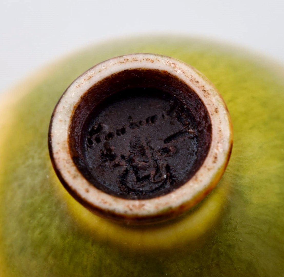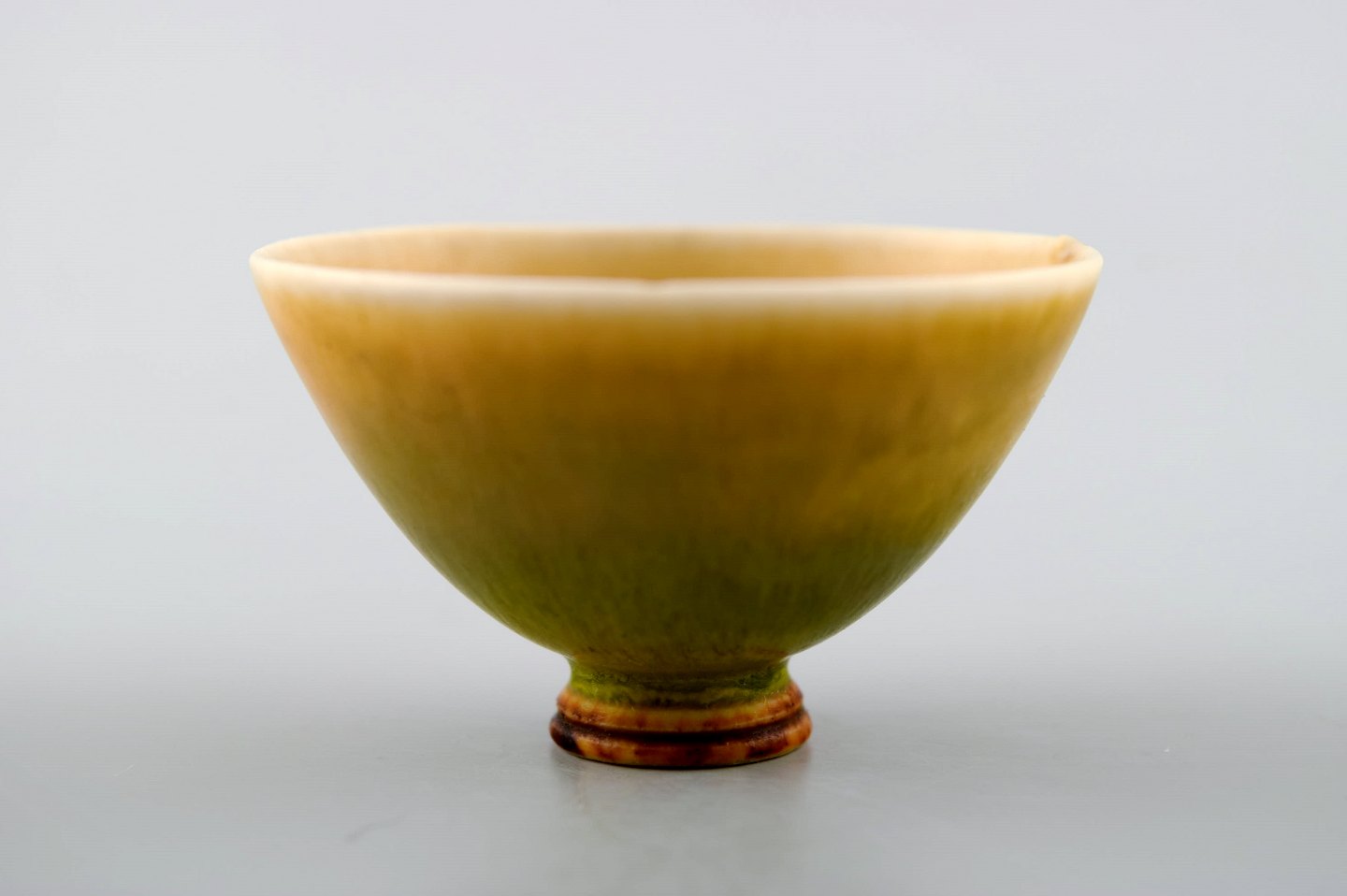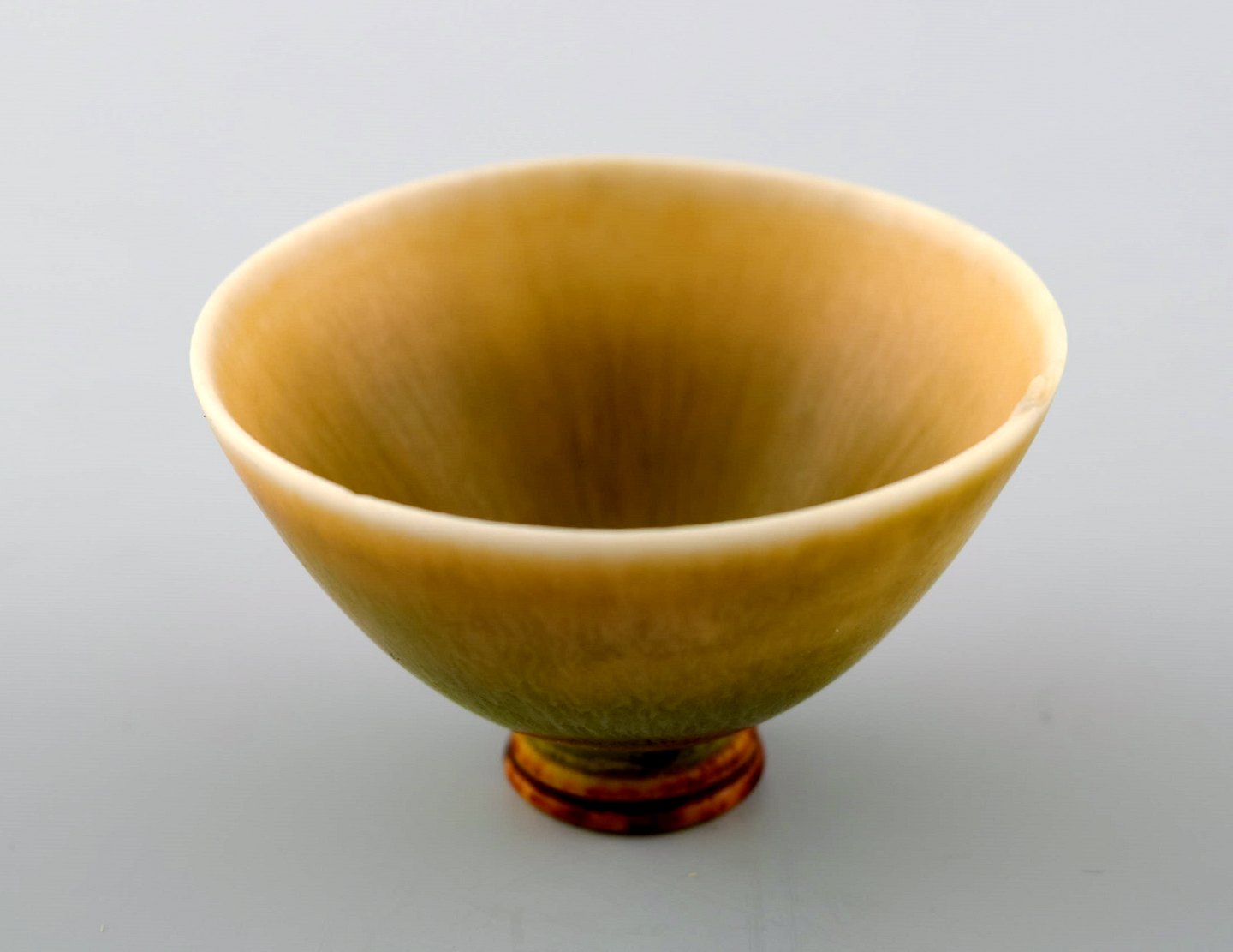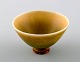Berndt Friberg Studio ceramic miniature bowl. Modern Swedish design. Unique, handmade. Beautifil glaze in yellow shades! Perfect. 1st. assortment. Signed. Measures: 4.3 cm. x 2.6 cm.