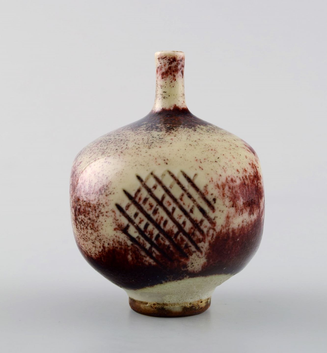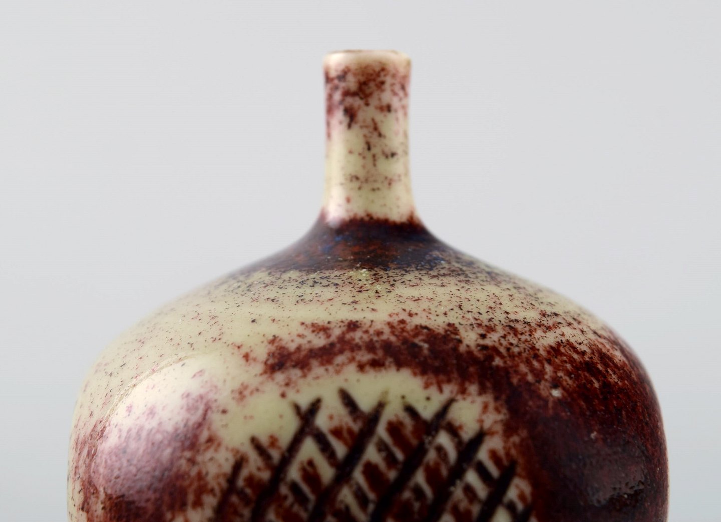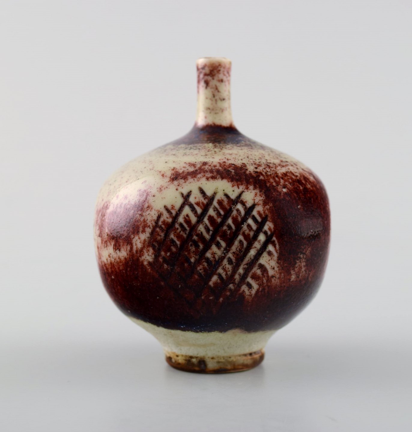 Berndt Friberg Studio ceramic vase. Modern Swedish design. Unique, handmade. Rare form. Beatiful glaze. Perfect condition. 1st. assortment. Measures: 7.5 cm. x 5 cm. Signed.