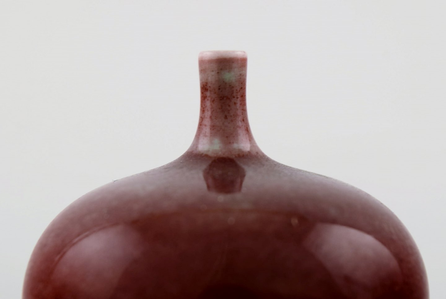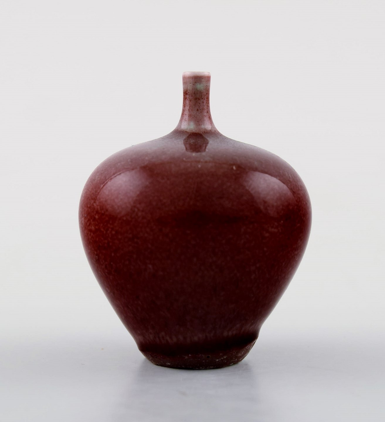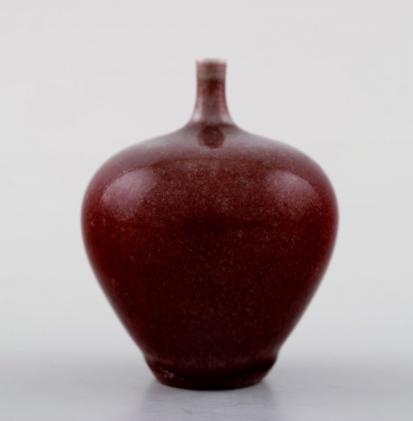 Berndt Friberg Studio keramikvase. Moderne svensk design. Unika, håndlavet. Fantastisk glasur i røde toner. Perfekt stand. 1. sortering. Måler: 5,2 cm. x 3,8 cm.