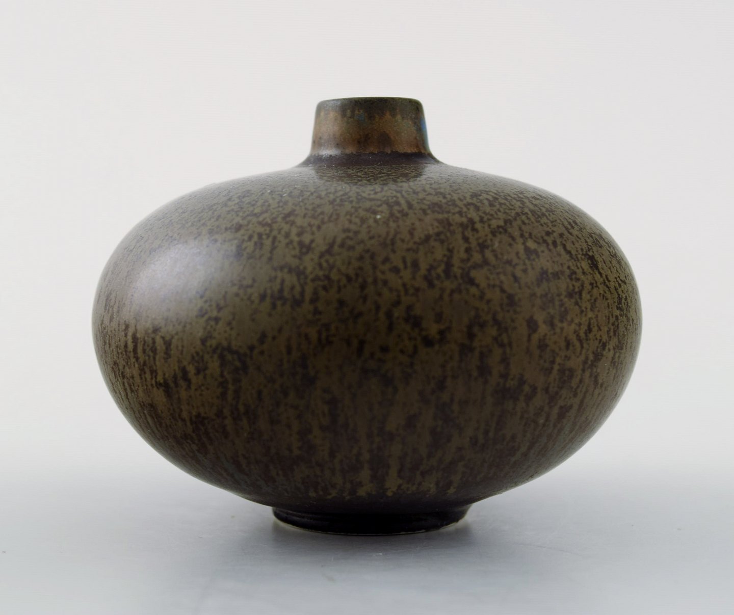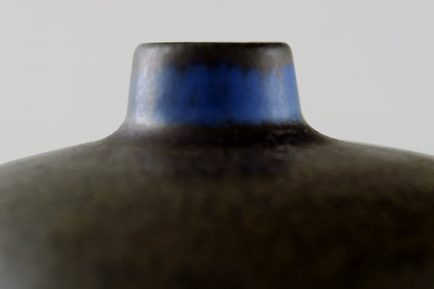Berndt Friberg Studio keramikvase. Moderne svensk design. Unika, håndlavet. Sjælden form. Fantastisk glasur i brune toner. Perfekt stand. 1. sortering. Måler: 7 cm. x 5,5 cm.