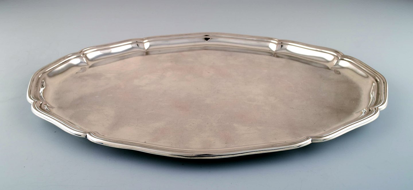 Dansk tretårnet sølv, stor bakke, 1930/40´erne. I perfekt stand. Stemplet. Måler : 45 cm. x 35 cm. Vægt : 1100 gram.