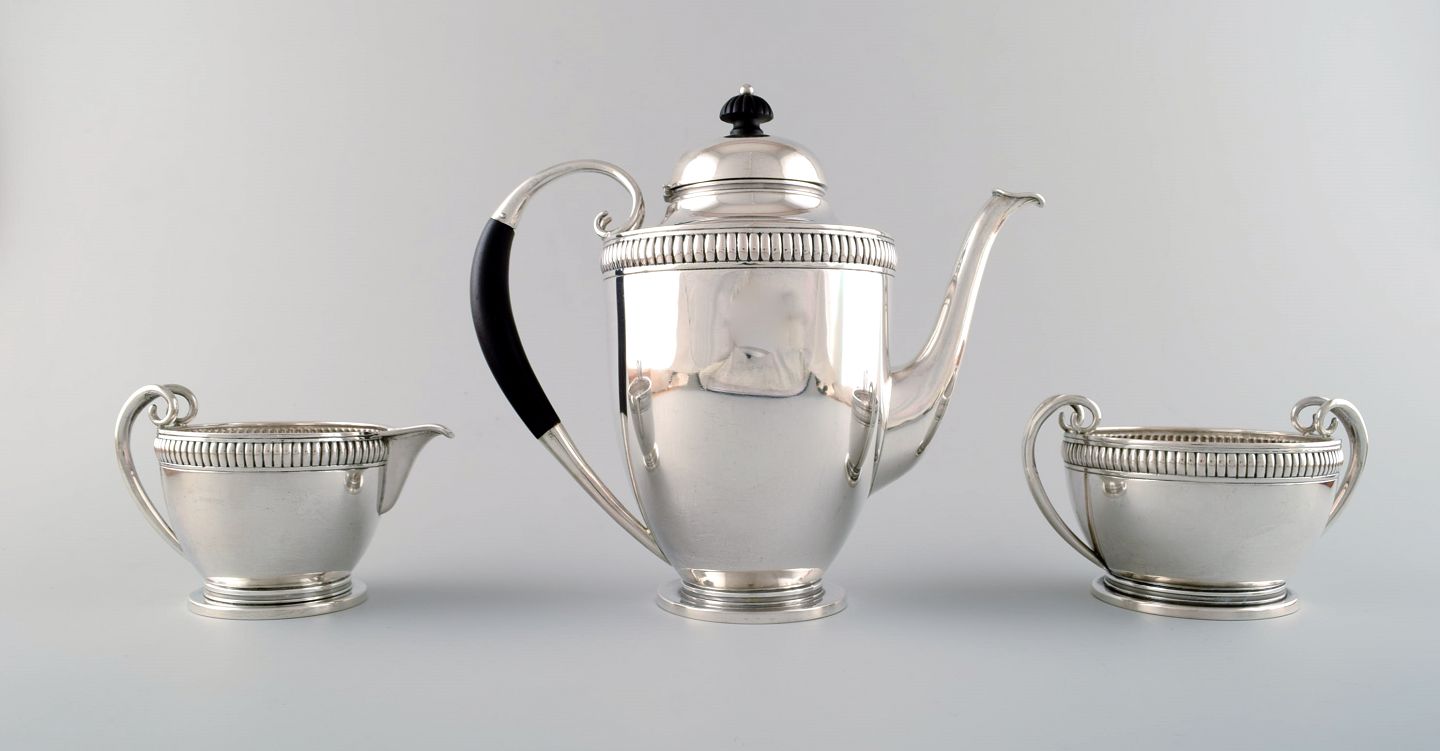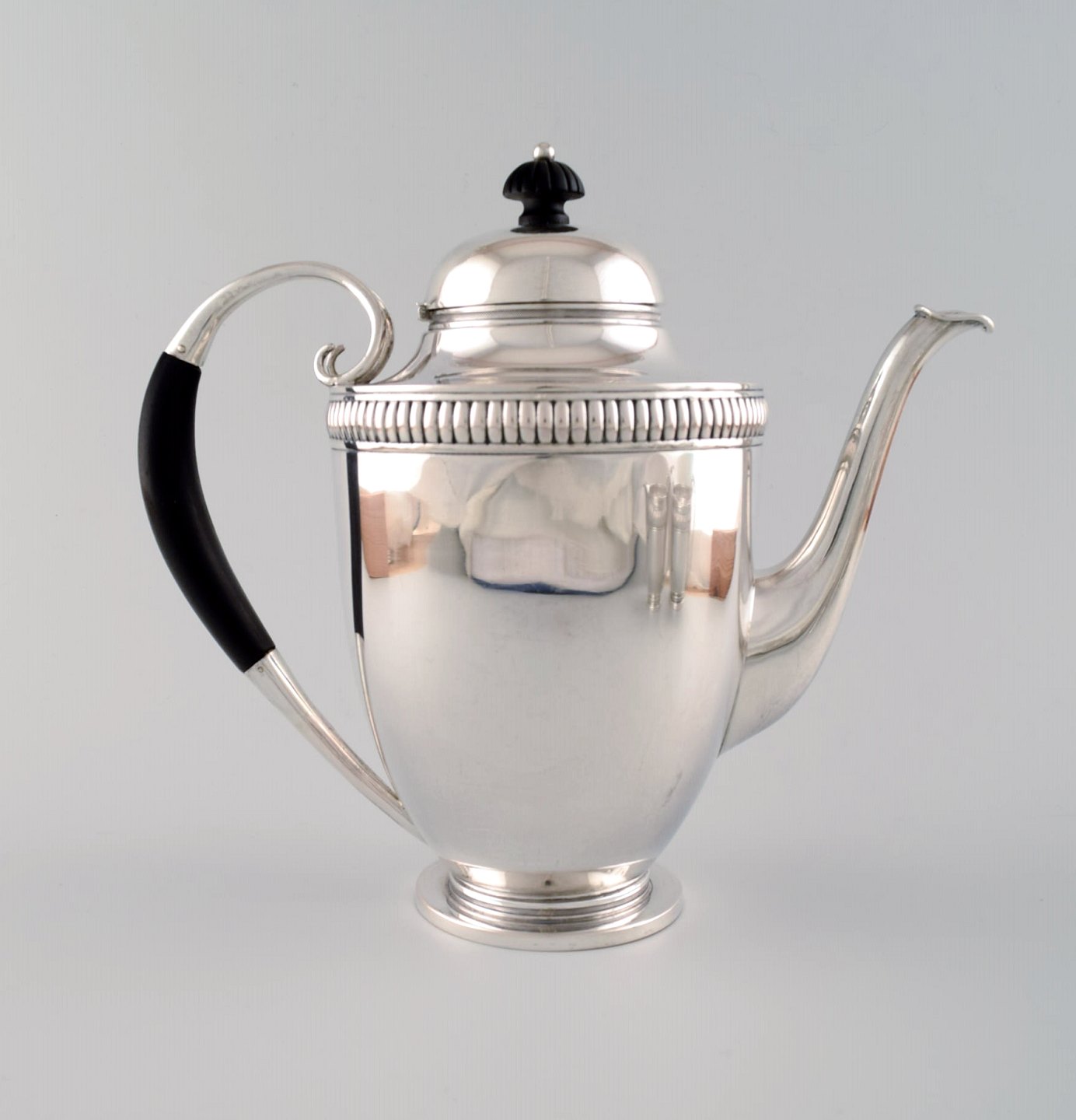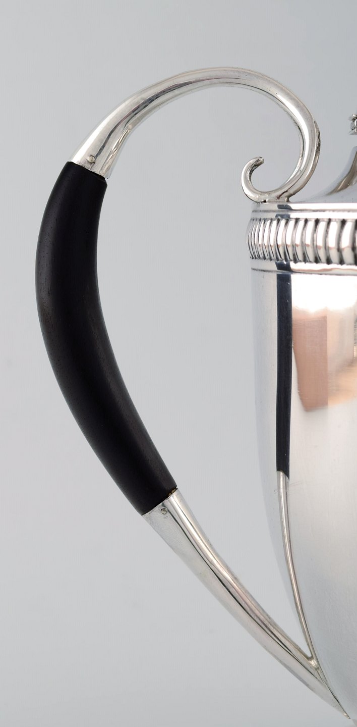 Jens Sigsgaard, kaffeservice, tretårnet sølv. 1940´erne. I perfekt stand. Stemplet. Måler : 22 cm. Vægt : 1200 gram.
