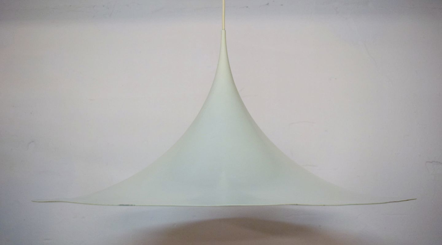 "Semi pendel", Klaus Bonnerup & Torsten Thorup trumpet lamp. White. Diameter 68 cm. In very good condition.