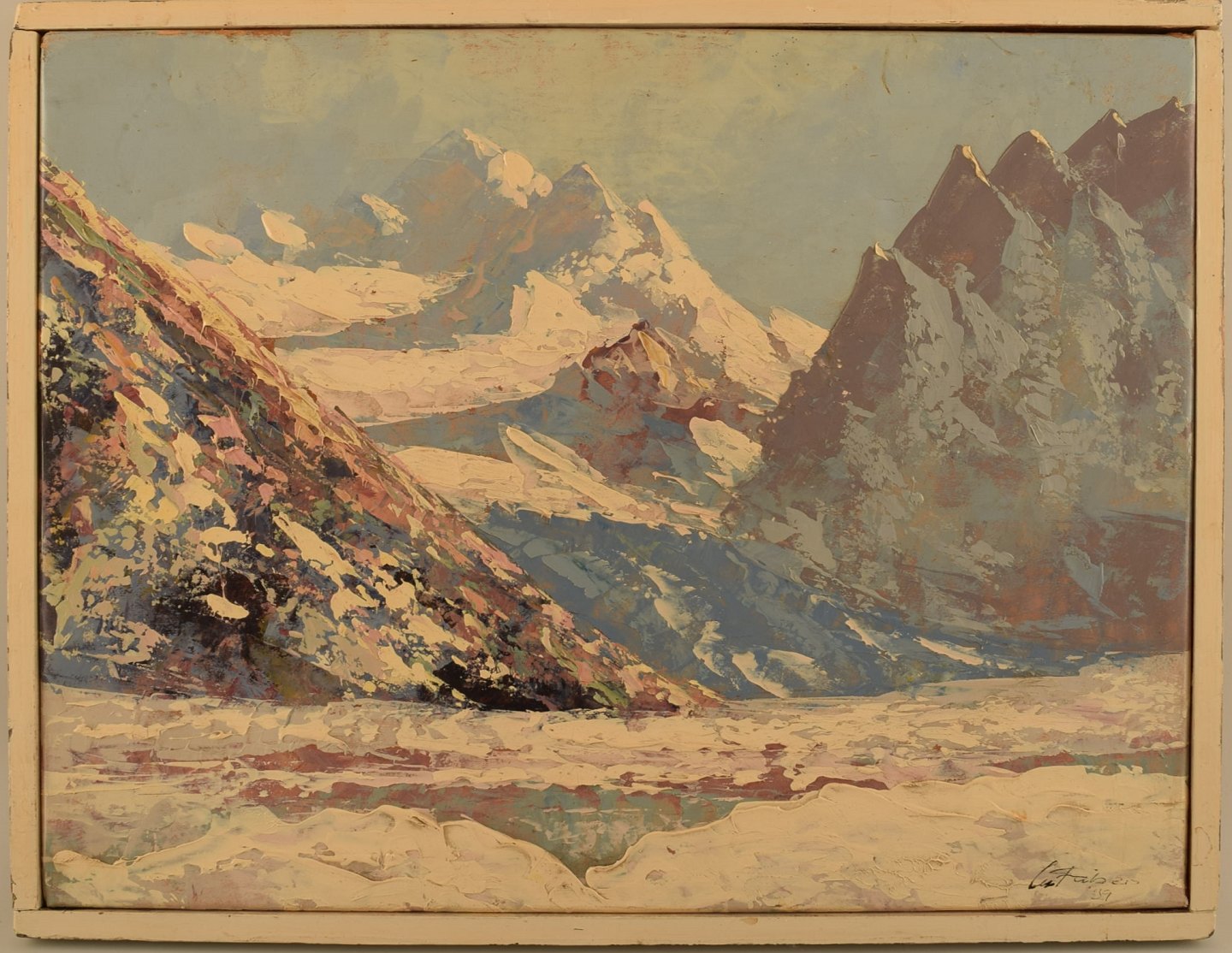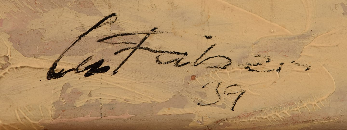 Oil on canvas. Winter mountain landscape, 1939. In very good condition. Indistinctly signed: C. Faber. Measures (ex. the frame) 42 x 32 cm. The frame measures 3 cm.