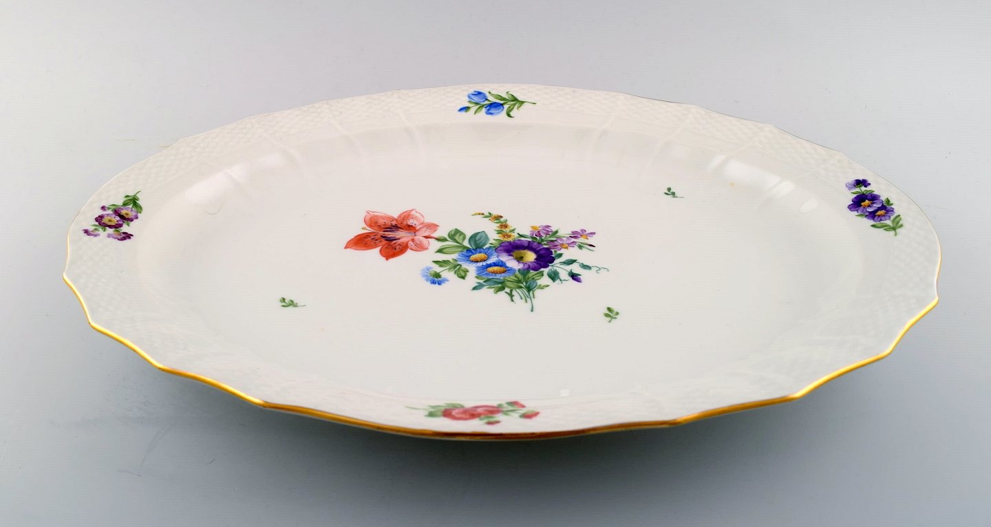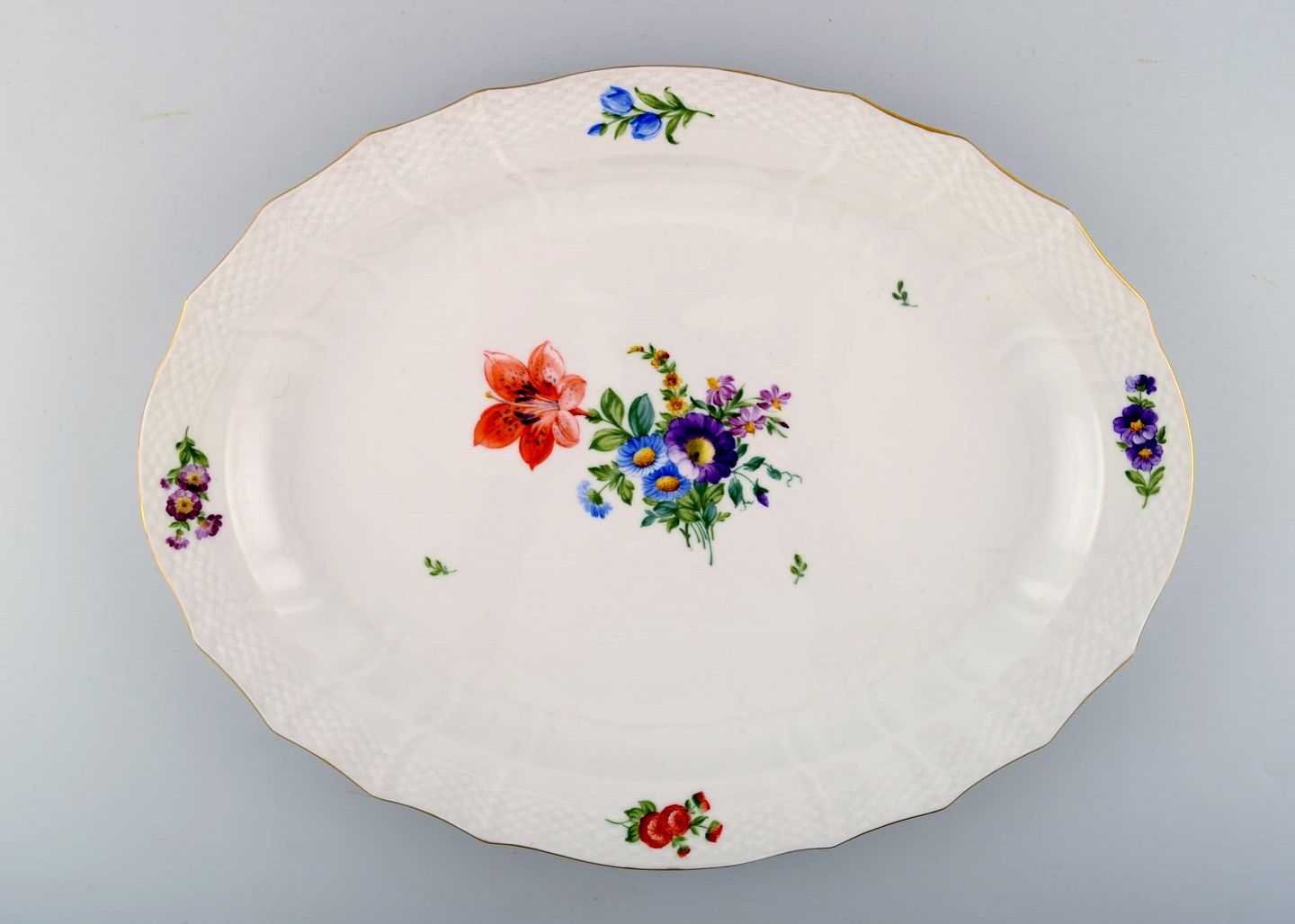 Royal Copenhagen Light Saxon Flower, Oval serving dish. Decoration Number 493/1558. 2nd assortment. Measures 43 cm. x 33 cm. Perfect condition.