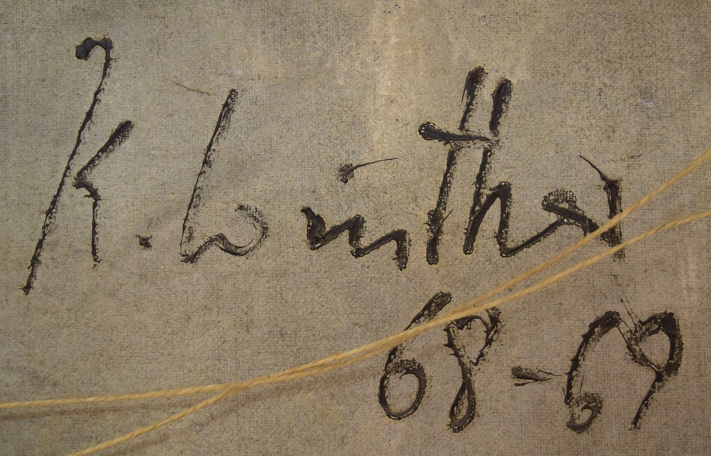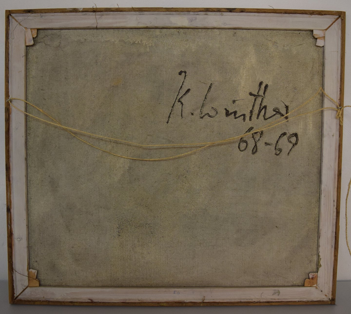 Karsten Winther (født 1934) abstrakt opstiling. Signeret : K.Winther. 1968-69. Måler : 93 cm. x 83 cm. Rammen måler 1,5 cm. I perfekt stand.