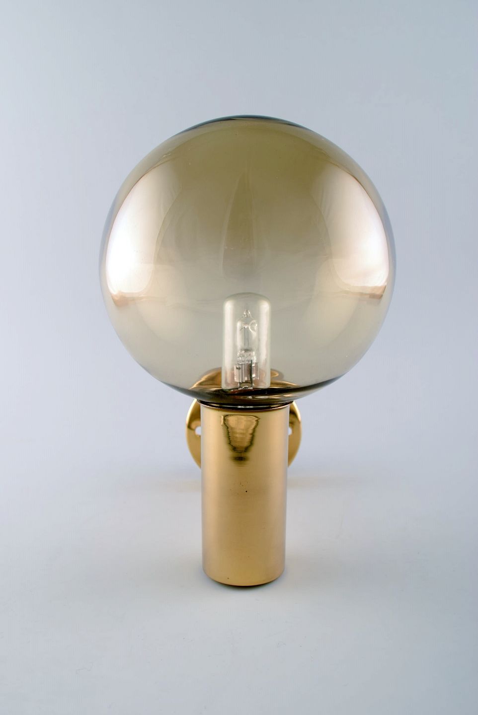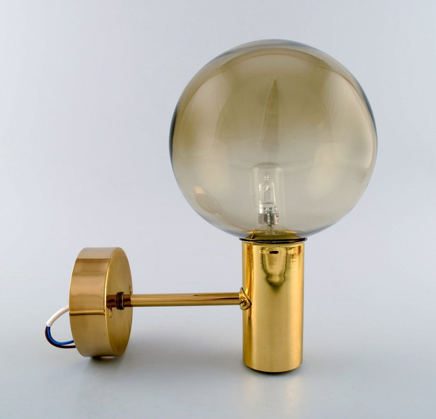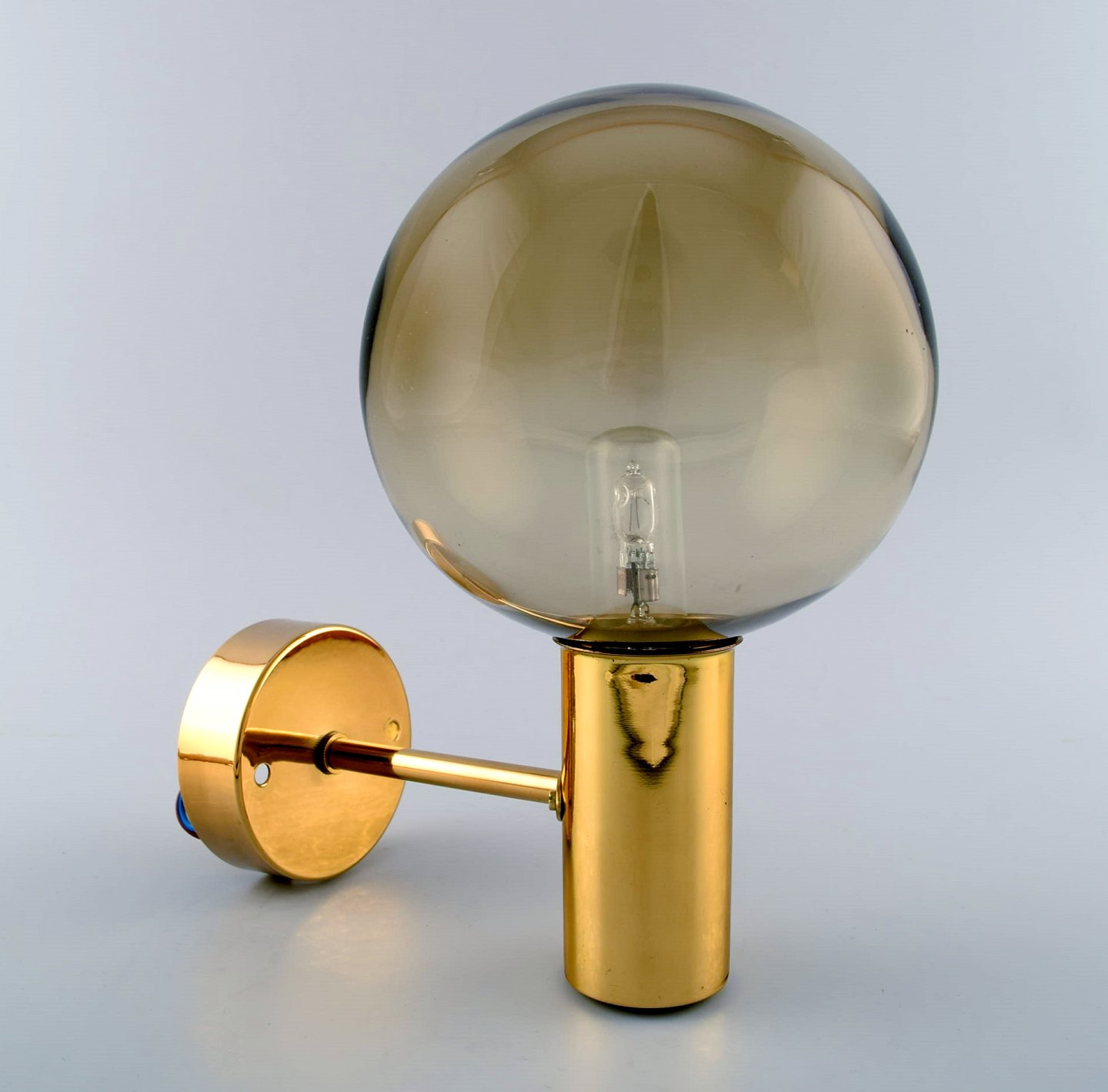 HANS-AGNE JAKOBSSON, 5 væglamper, 1960´erne, skærme i røgfarvet glas. Diameter af skærm 14 cm. I perfekt stand.