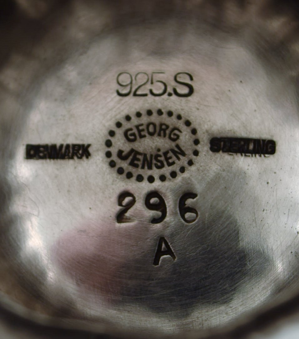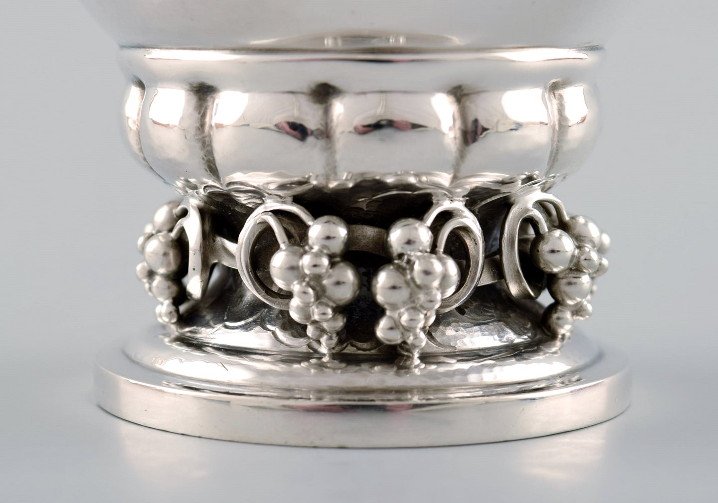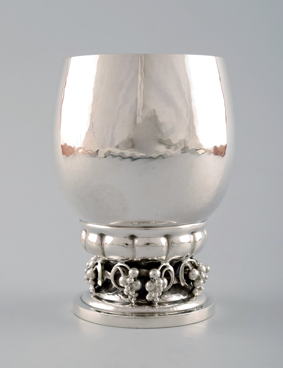 5 Georg Jensen sterling silver cup with grapes # 296A. Measures 10 cm. x 7 cm. In perfect condition. Stamped.