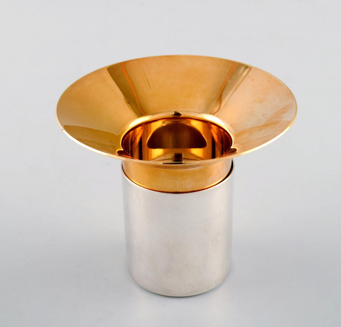 Georg Jensen candleholder for tealights in sterling silver number 1344. Measures 8 cm. diameter. 9 cm. high. In perfect condition. Stamped.