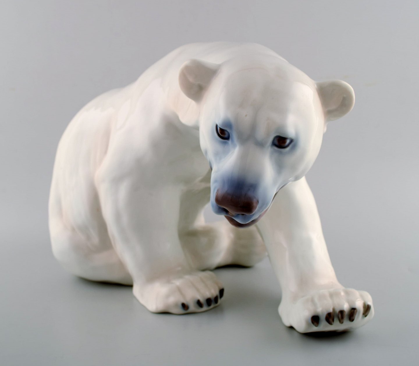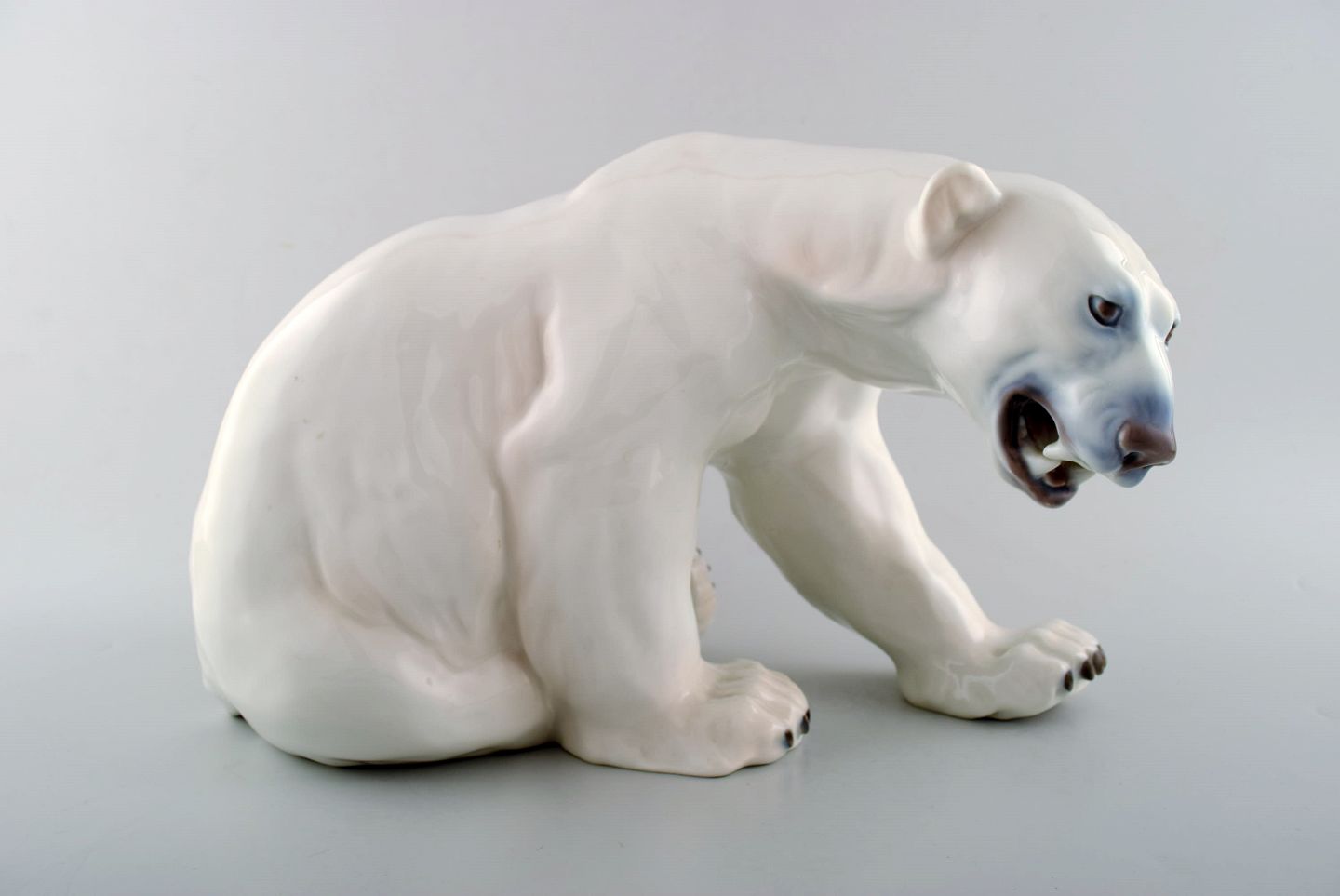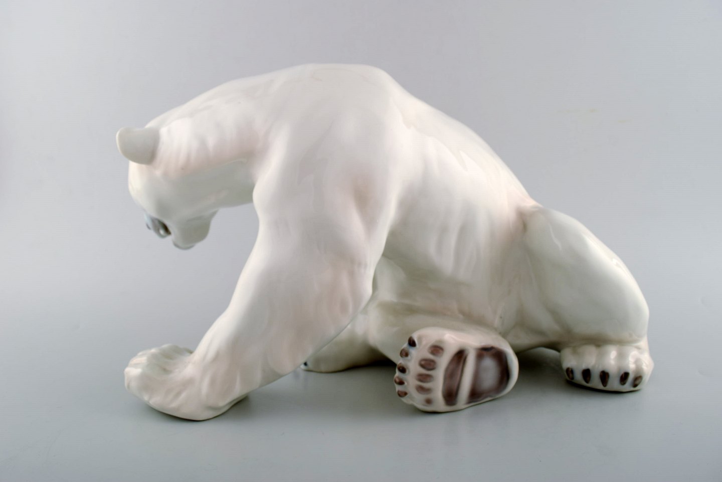 Bing and Grondahl/ B&G. Knud Kyhn. Polar bear in porcelain, no. 1857. Mid. 20 c. 1st. assortment. In perfect condition. H. 21. L. 33 cm. Stamped.