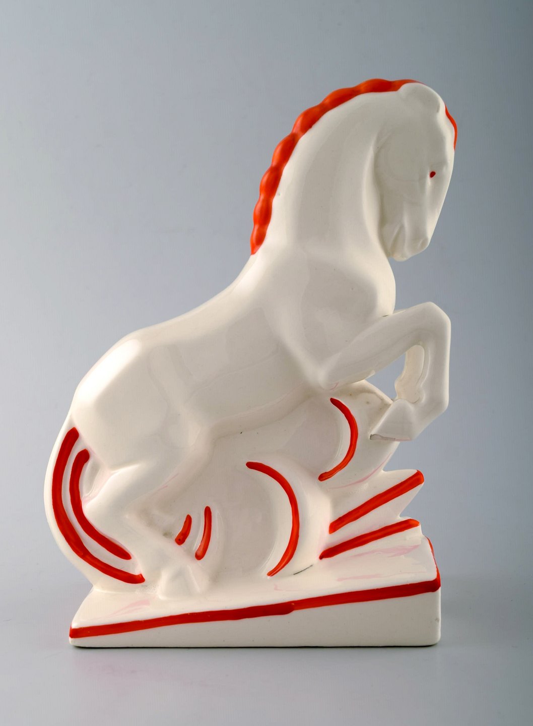 Goldscheider, stejlende hest i porcelæn, Art Deco 1940´erne. Stemplet. Måler : 18 cm. x 14 cm. I perfekt stand.