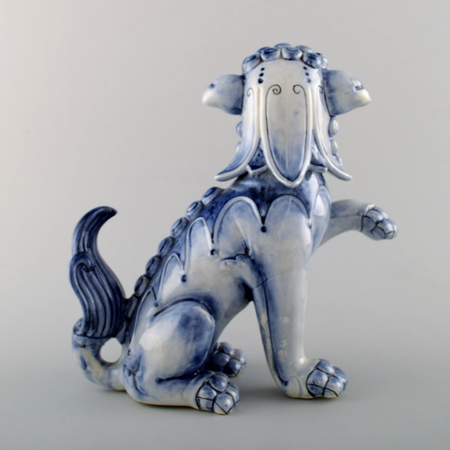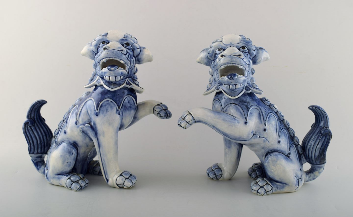 A pair of Rare Rorstrand porcelain figures of Chinese dogs. Approx.. 1900. Measures 25 cm. x 24 cm. 1st. assortment, in perfect condition. Stamped.