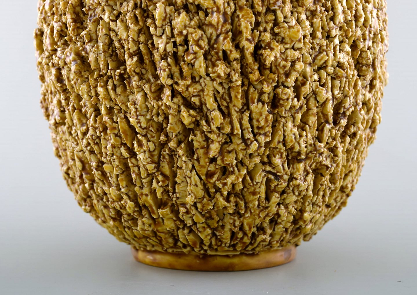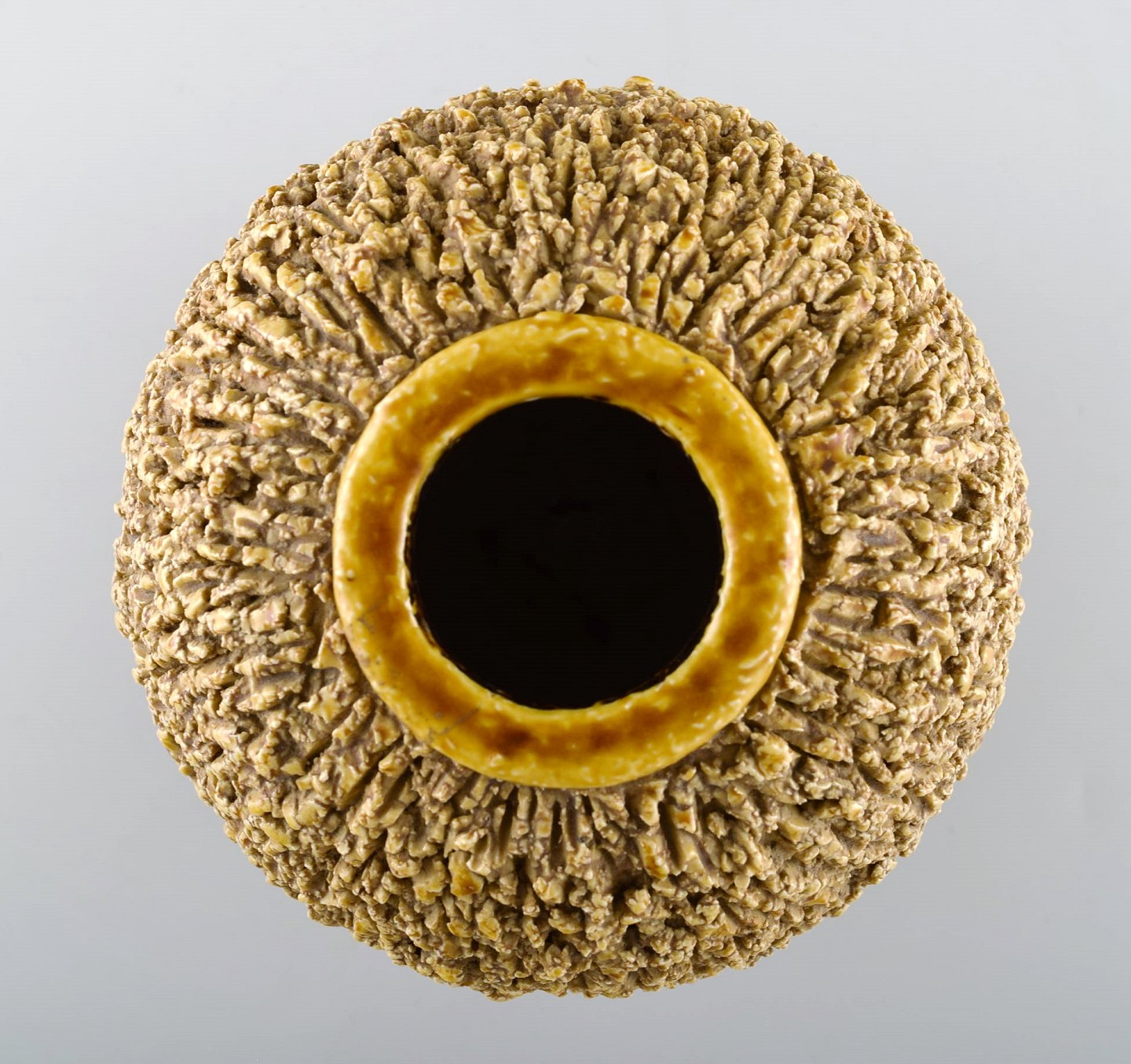 Rörstrand / Rorstrand Gunnar Nylund "Chamotte" vase. "Hedgehog Vase". Mid 20 c. Measures: 21 x 16 cm. Largest model. Mustard glaze. Stamped. In perfect condition.