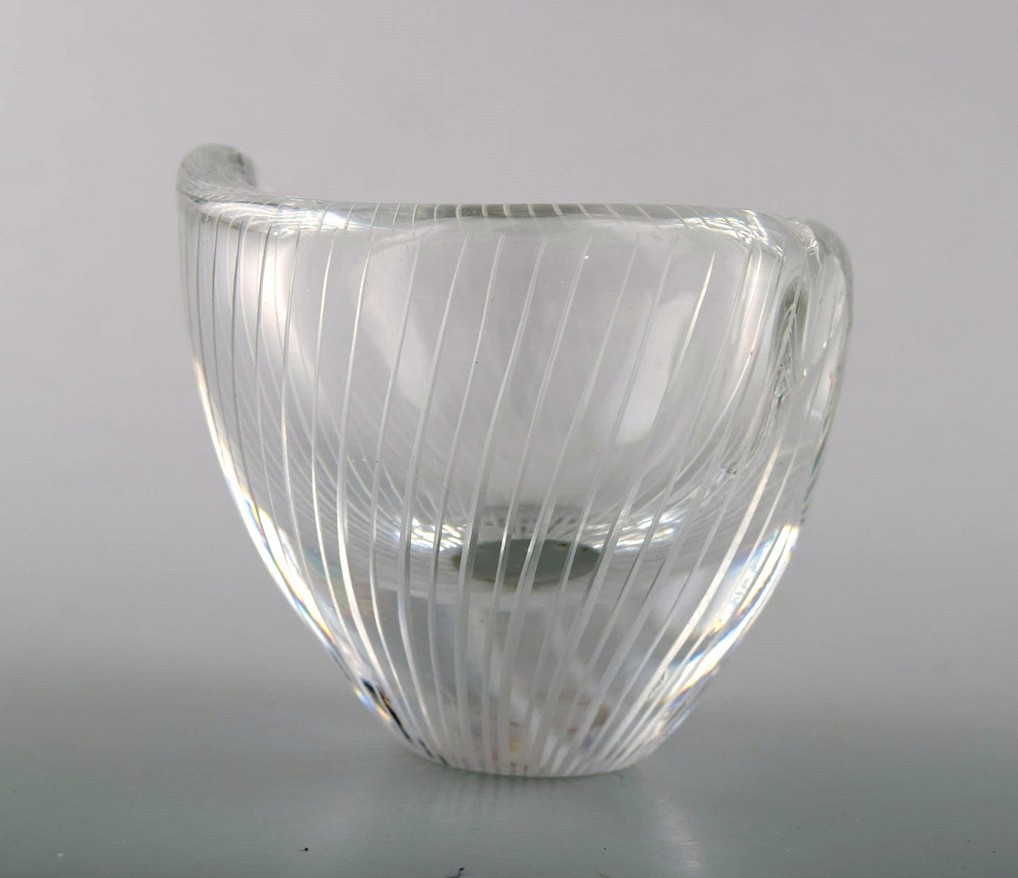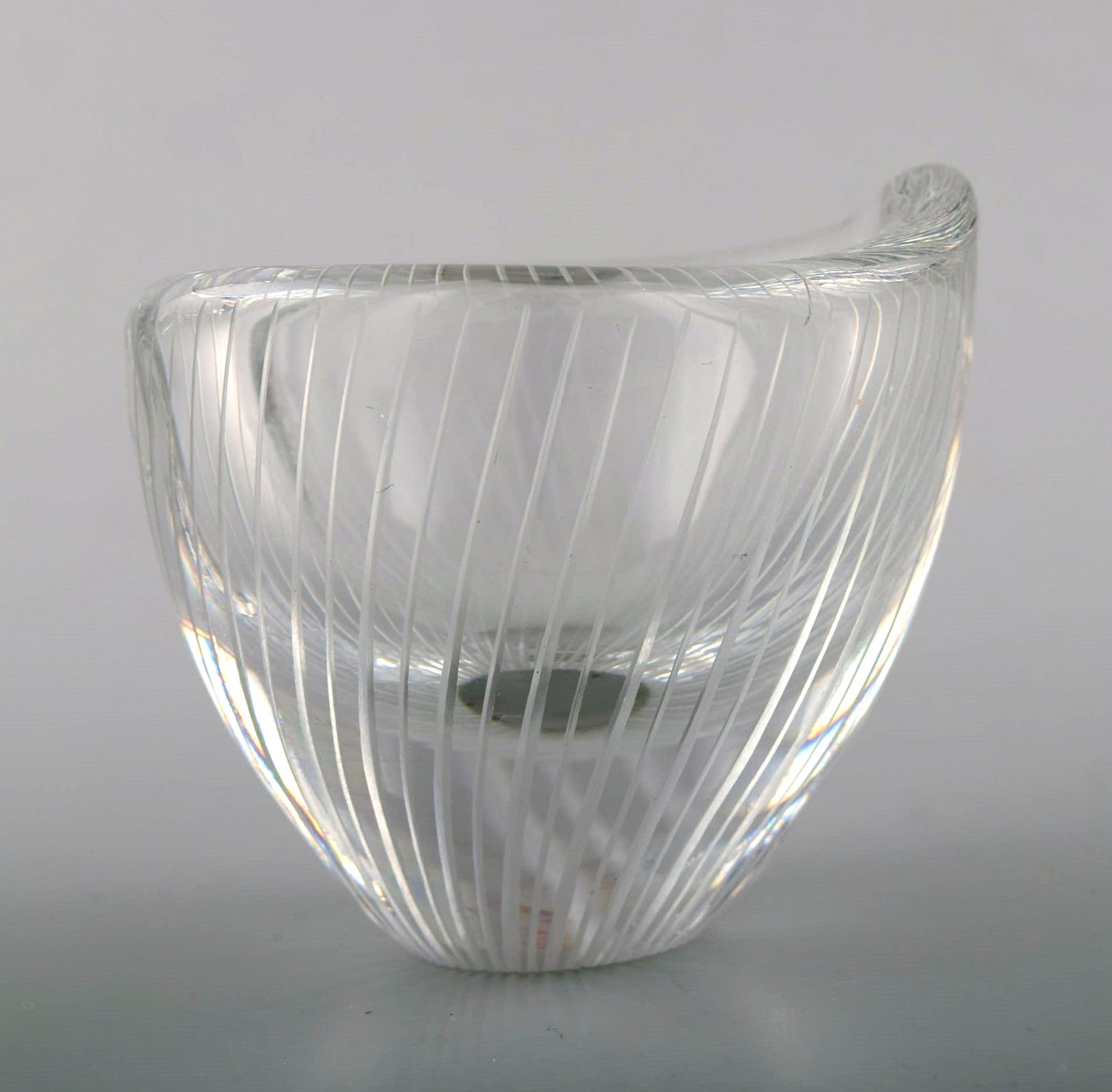 Tapio Wirkkala for Iittala. Finland 1960 s. Clear glass vase with engraved decoration in the form of stripes. Signed Tapio Wirkkala, Iittala. Dimensions 7 x 6 cm. In perfect condition.
