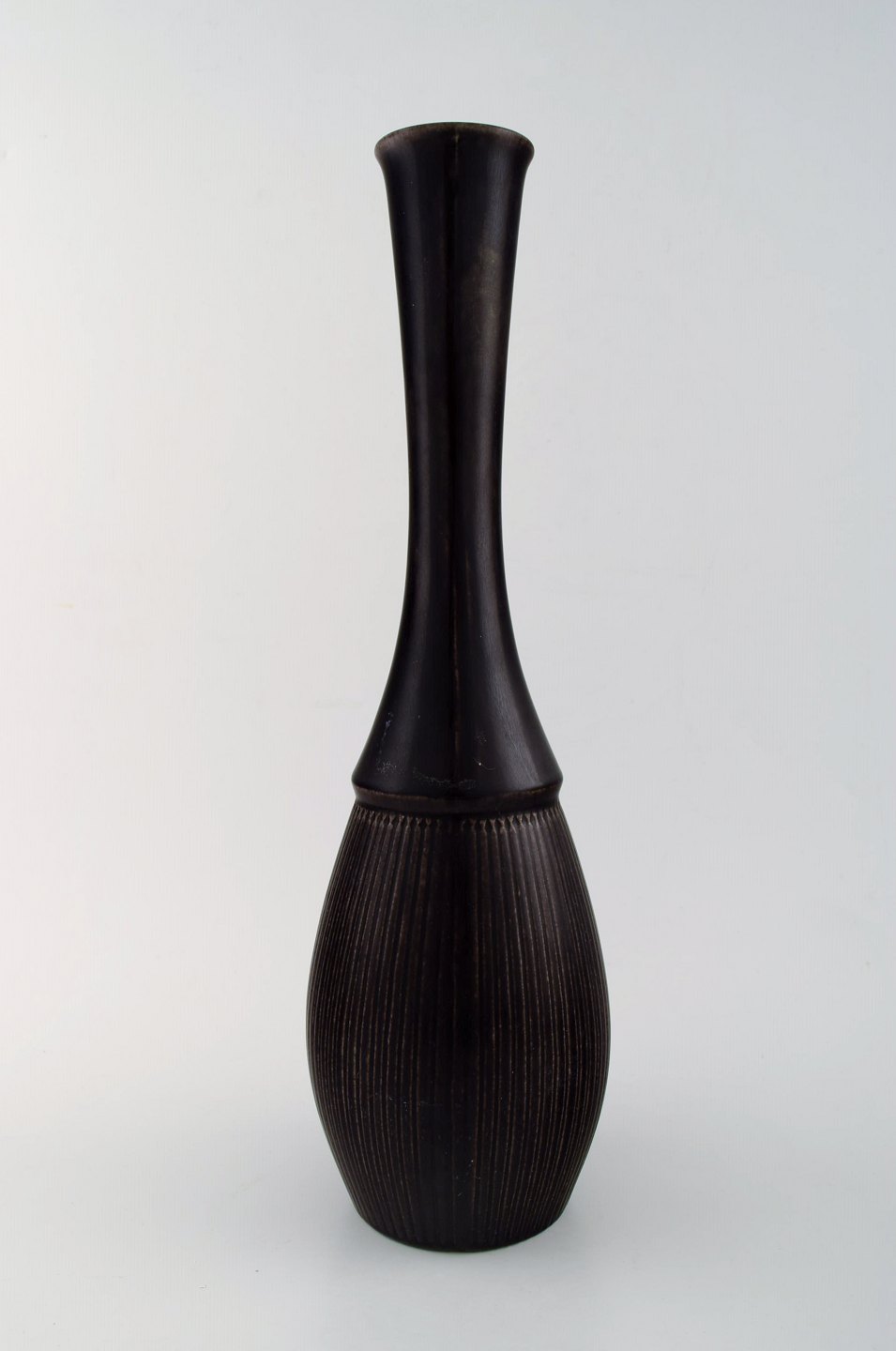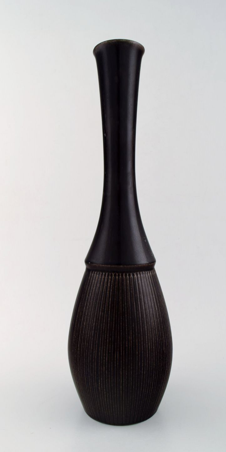Upsala-Ekeby / Gefle. Ceramic Vase, black glaze. Modern form. Marked. In perfect condition. Measures 34,5 cm. x 10 cm.