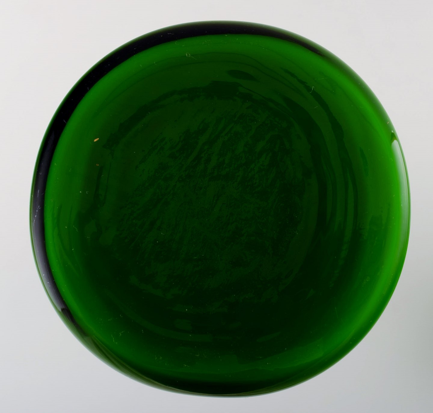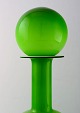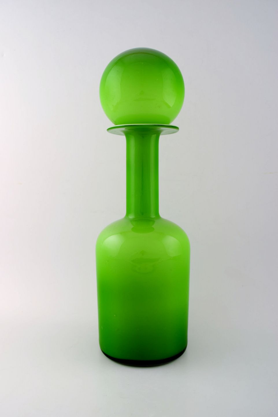 Holmegaard stor flaske, Otto Brauer. Kugleformet prop. Flaske i lysegrønt. Måler : 38 cm. x 12 cm. I perfekt stand.